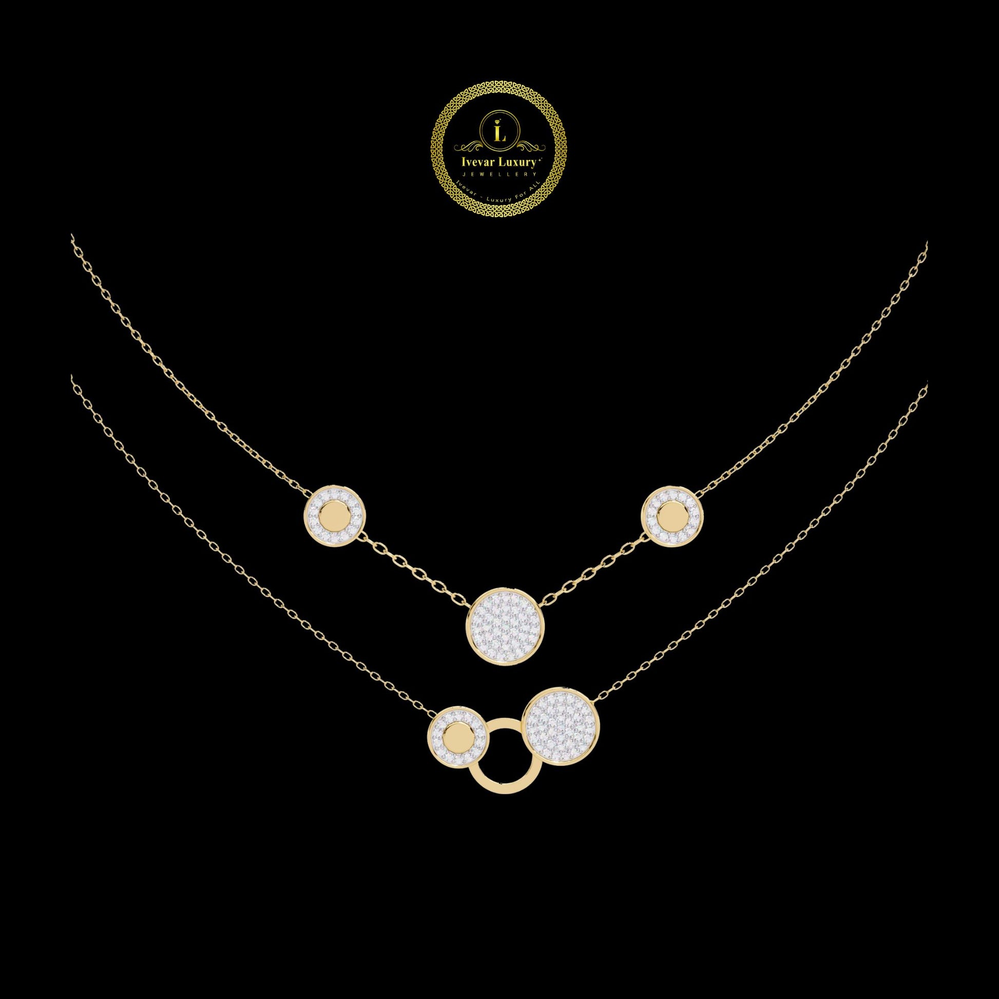 This Radiant Harmony Dual Layer Necklace captures the essence of refined minimalism with its gracefully layered design and luminous circular motifs. Crafted adorned with sparkling Moissanite diamonds, it radiates a modern yet timeless allure. Each round charm represents unity and wholeness, adding symbolic meaning to its beauty. The pave-set diamonds enhance brilliance, while the dual chain layering gives it depth and sophistication perfect for elevating everyday elegance or complementing evening wear ivevar jewelry.