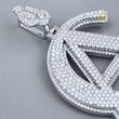 The design features two interlocking capital letters, "A" and "C", forming a prominent monogram. The entire surface of the pendant is covered in brilliant, round-cut moissanite diamonds using a dense pave setting, giving the piece intense sparkle and a solid, luxurious feel. The white metal setting (likely white gold or silver) ensures the maximum brilliance of the stones. The bail is also fully covered in stones, completing the sleek and cohesive look of this substantial, high-quality, personalized statement piece.