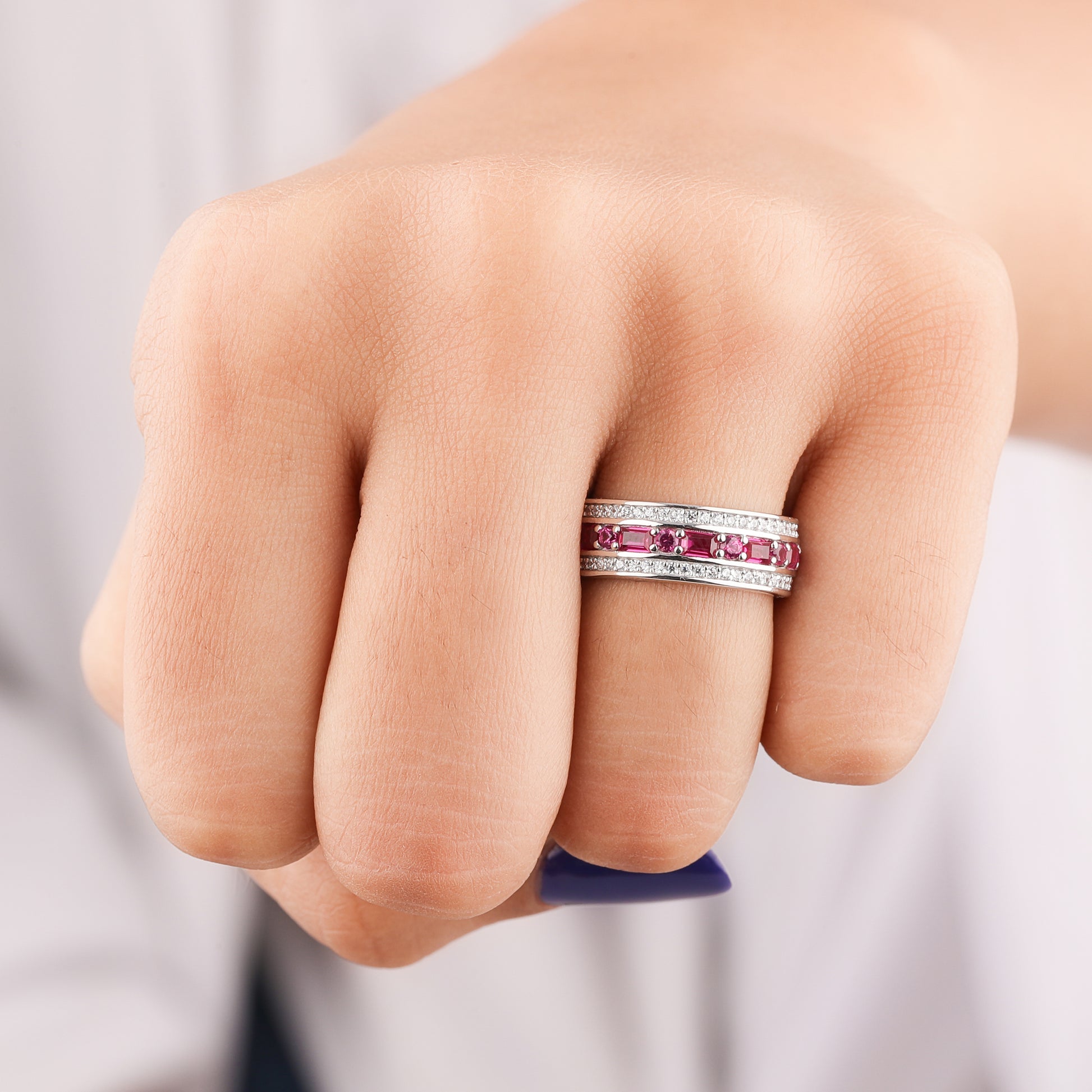 This diverse collection highlights the beauty and versatility of Natural Colored Gemstone and Diamond jewelry, ranging from statement cluster rings to various styles of elegant eternity bands.