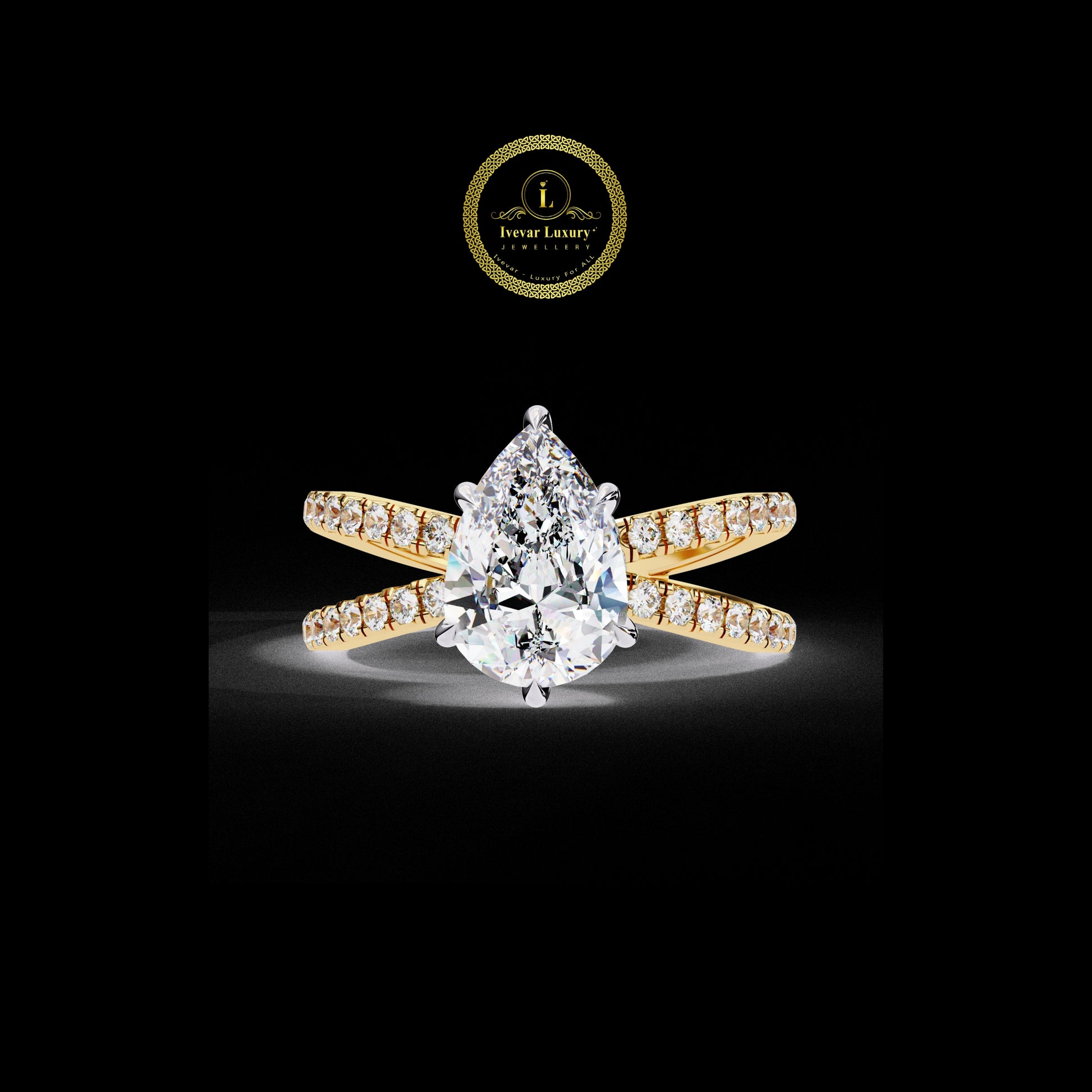 Luxury Pear Cut Moissanite Diamond Ring Vintage Gold Bridal Jewelry By Ivevar