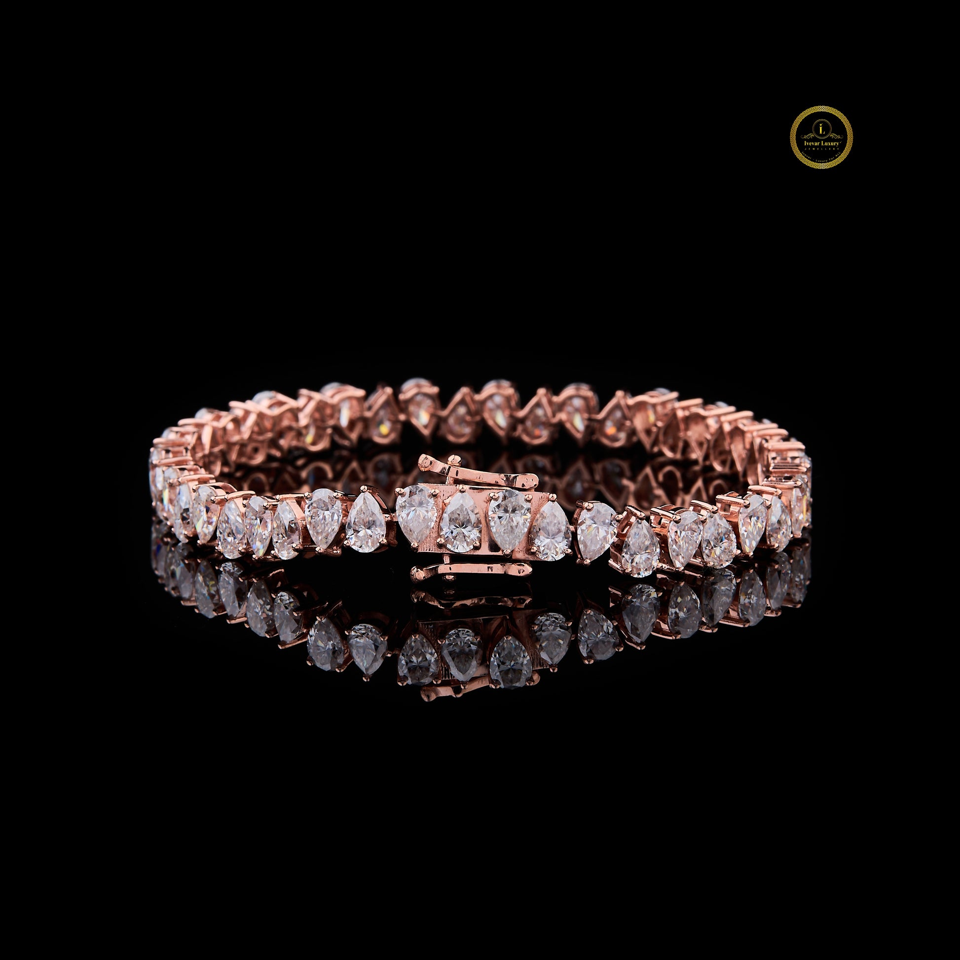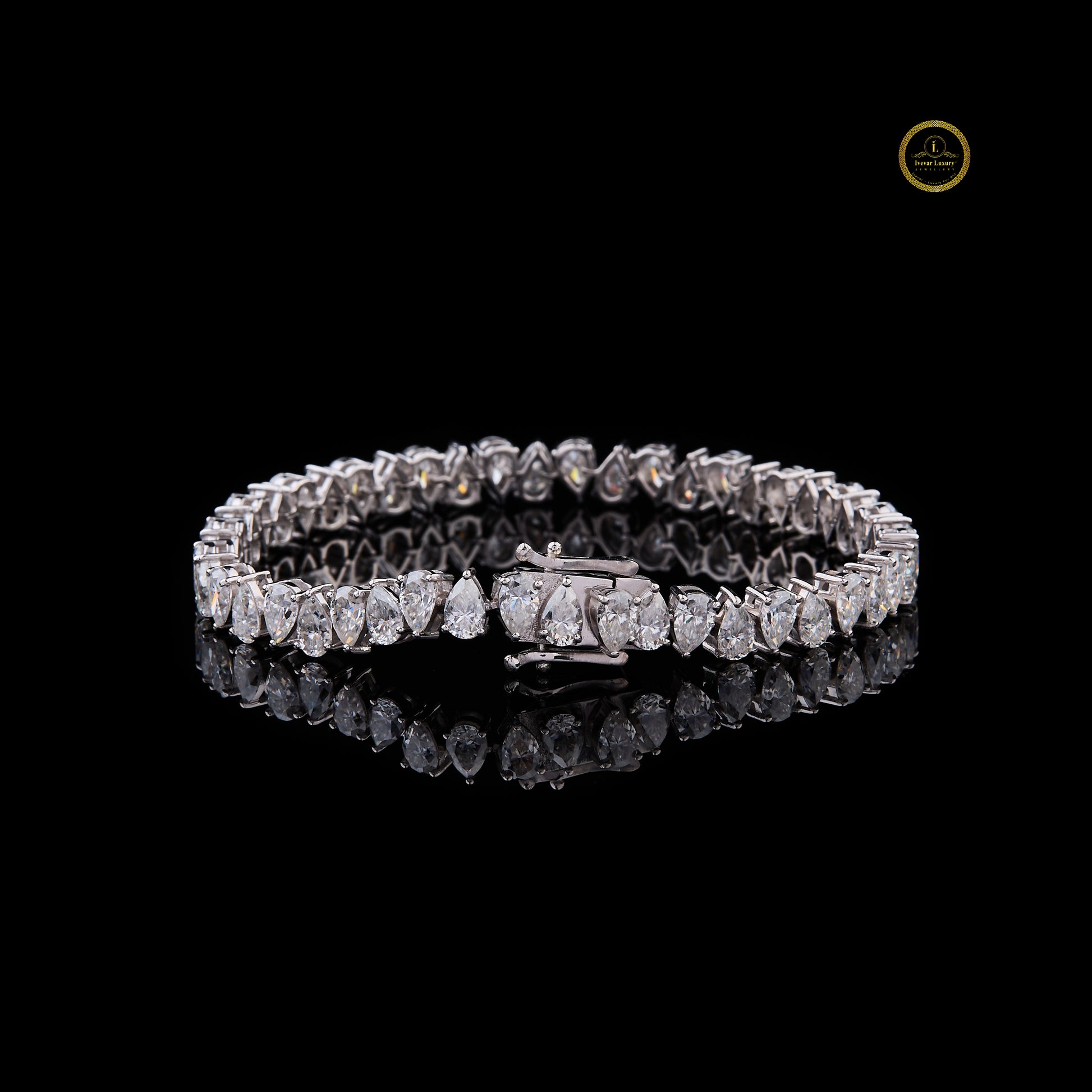 Radiating unparalleled brilliance, this pear-cut diamond tennis bracelet is a captivating blend of sophistication and modern glamour. Each meticulously matched pear-shaped diamond is prong-set in high-polish white gold, creating a shimmering ribbon of fire that wraps gracefully around the wrist. The elegant silhouette highlights the distinctive teardrop sparkle of every stone, offering a look that is both bold and refined. Perfect for red-carpet evenings, bridal elegance, or upscale everyday wear, this bracelet is a true statement piece crafted to elevate any jewelry collection.