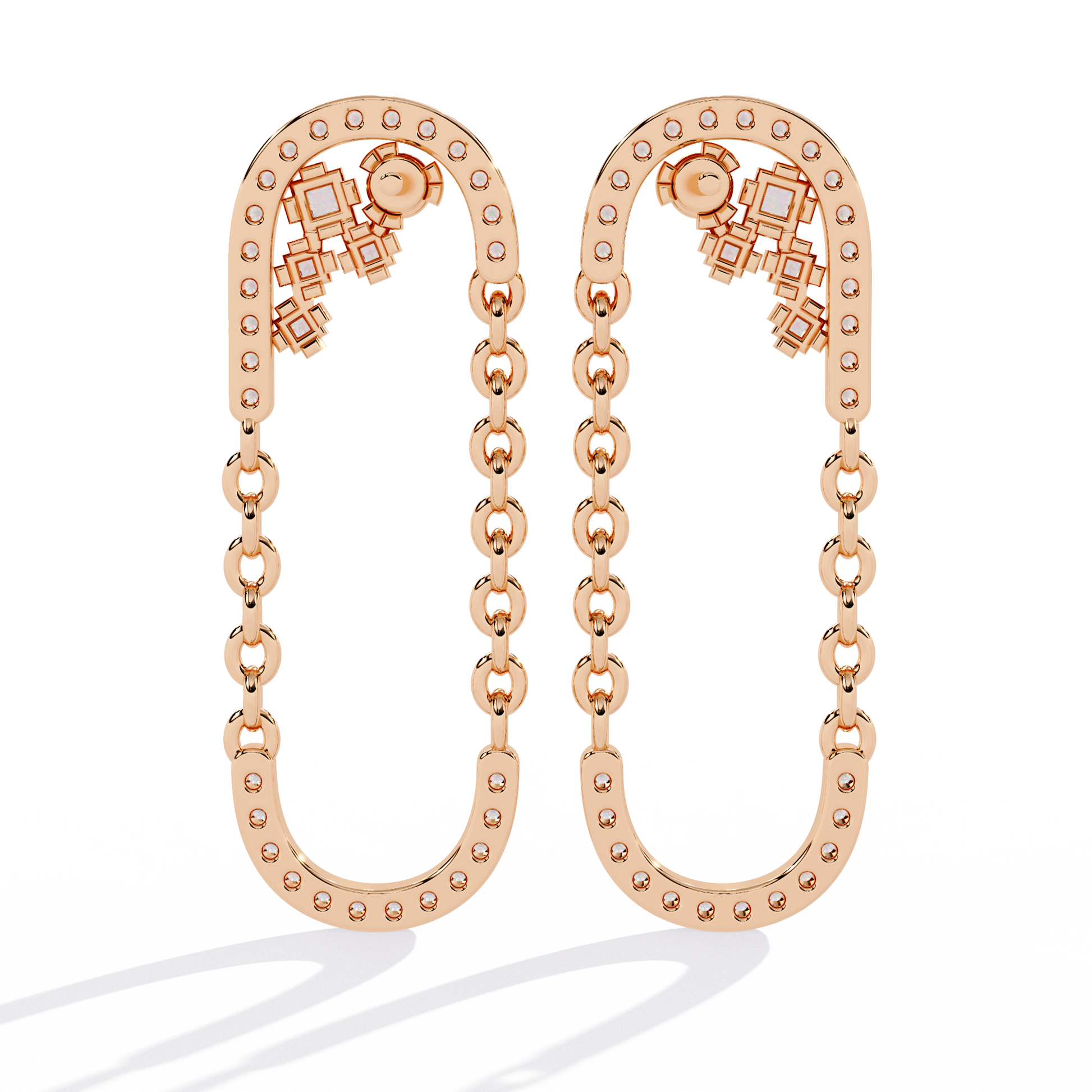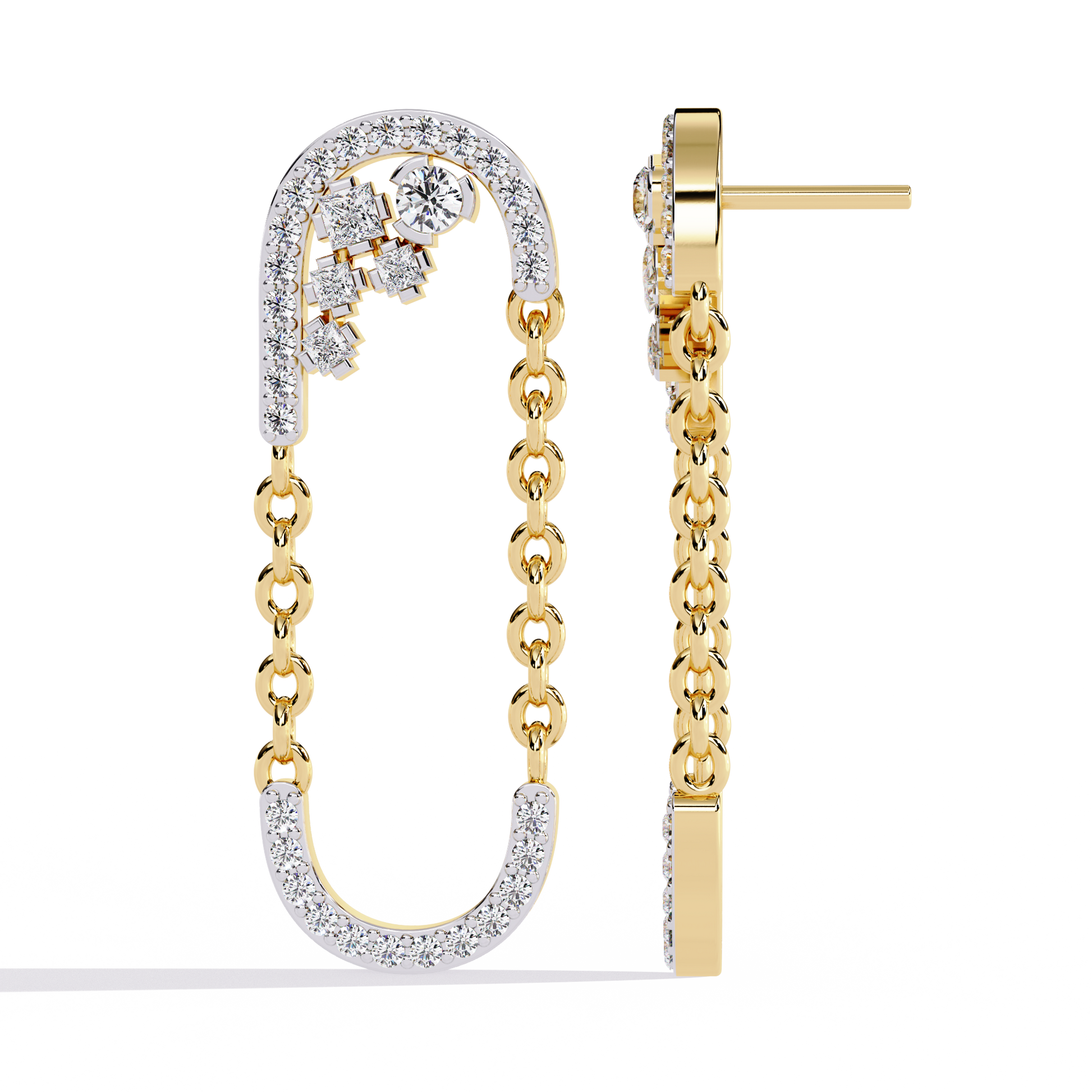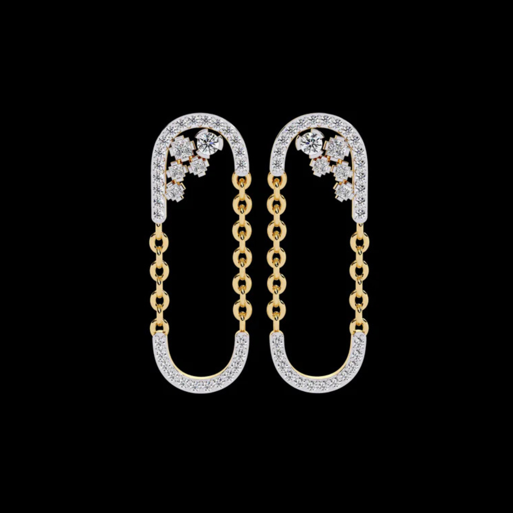 The Diamond Chain Loop Earrings by Ivevar Luxury Jewels exude a captivating blend of modern artistry and timeless sophistication. Handcrafted in radiant gold, each earring features a graceful U-shaped diamond loop connected by delicate gold chains, symbolizing elegance in motion. The shimmering floral diamond clusters add a touch of organic brilliance, creating a perfect harmony between geometry and grace. A statement of refined luxury and contemporary charm, these earrings are designed for those who appreciate jewelry that speaks of strength, femininity, and enduring beauty.