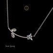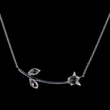 This delicate 14k white gold necklace features an enchanting nature-inspired design, showcasing a gracefully curved vine adorned with striking diamonds. The focal points are three marquise and oval-shaped rose-cut natural diamonds, whose distinct faceting creates a soft, translucent, and romantic glow, resembling dew drops on leaves. A tiny cluster of brilliant-cut diamonds near the larger stone adds an extra touch of sparkle. Suspended from a slender chain, this pendant offers an elegant, understated statement. Its artistic vine motif and vintage-style rose-cut diamonds make it a charming and unique piece, perfect for everyday wear or a subtle, sophisticated accent.