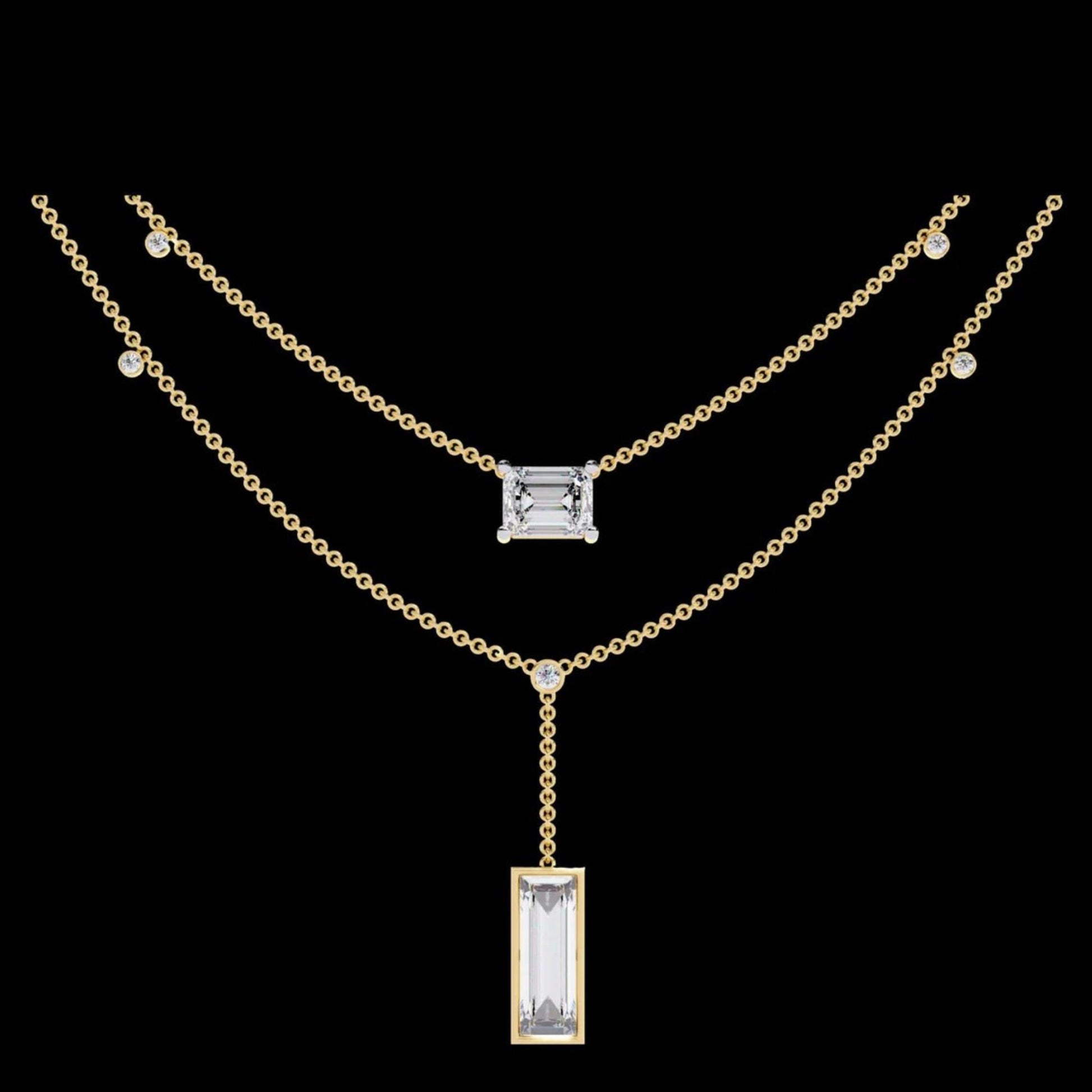 Elevate your style with the timeless grace of the Ivevar Luxury Layered Necklace, a masterpiece of modern sophistication. This double-chain design features a radiant emerald-cut diamond pendant on the upper layer with round-cut diamond, delicately balanced with a striking baguette-cut stone drop that enhances its luminous appeal. Perfect for bridal wear, evening events, or daily refinement, this piece embodies luxury in every detail. Crafted to perfection, Ivevar Luxury captures the essence of brilliance, beauty, and enduring elegance.
