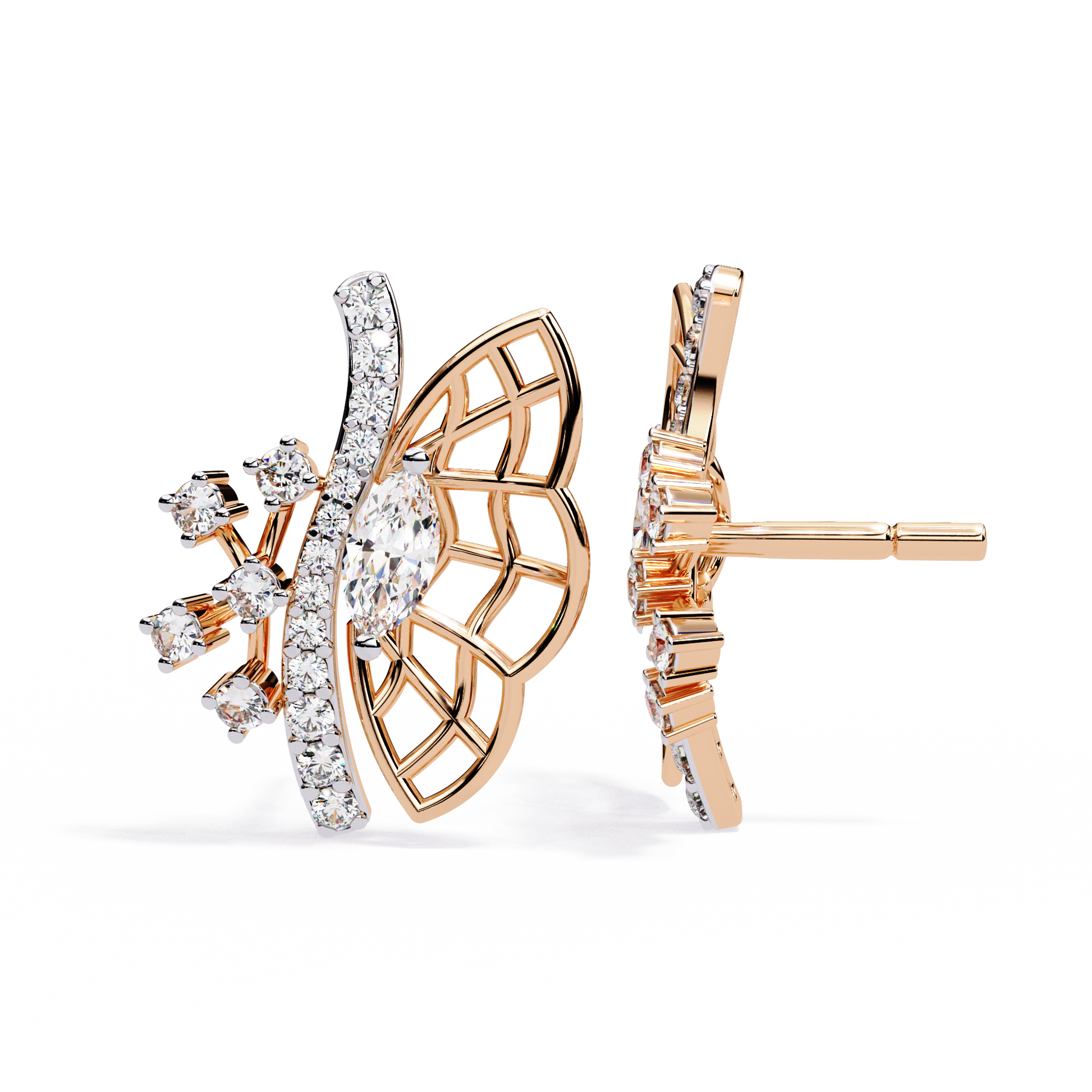 The Butterfly Grace Lab Diamond Earrings by Ivevar Luxury Jewels capture the delicate beauty of nature through a blend of artistry and brilliance. Expertly crafted in radiant yellow gold, each earring features an openwork butterfly wing accented with marquise and round-cut diamonds, creating a stunning interplay of light and texture. The intricate lattice design paired with sparkling diamond trails embodies freedom, transformation, and timeless elegance, making these earrings a symbol of grace and refined luxury for every modern woman.