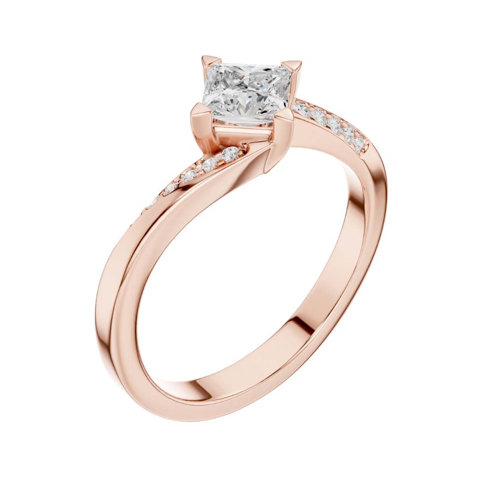 0.57 CT Modern Gold Bypass Ring Featuring a Princess Lab Grown Center Diamond and Pave Accent Stones