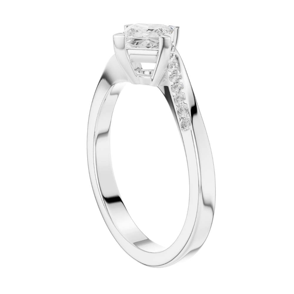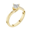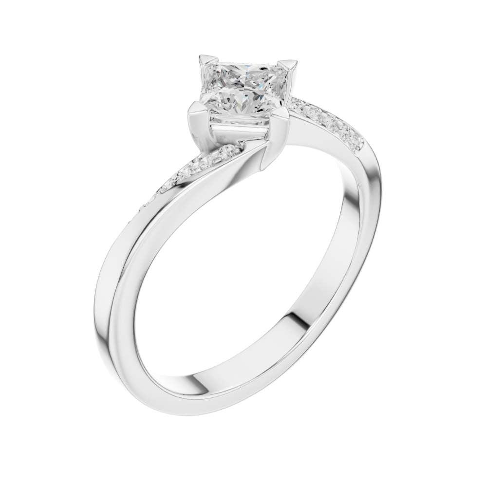 This striking ring showcases a brilliant princess-cut center diamond set within a contemporary bypass-style band crafted in polished gold. The asymmetric design draws the eye toward the center stone, while the pave-set accent diamonds along each side add graceful sparkle and dimension. Sleek, modern, and artfully sculpted, this ring blends elegance with bold design—perfect for someone who loves a unique and sophisticated statement piece by Ivevar.