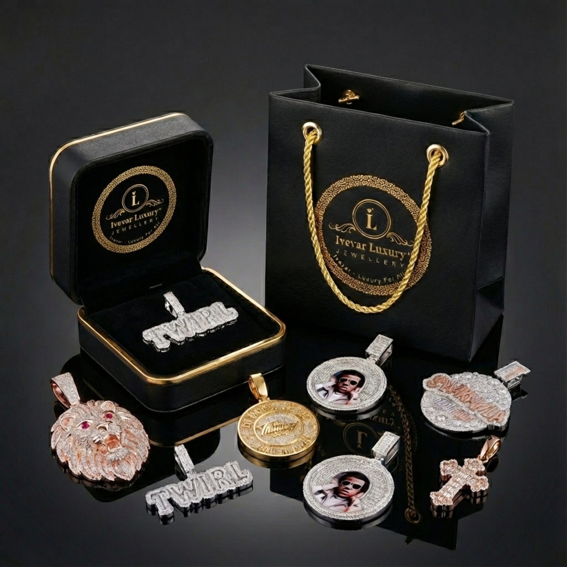 This is a large, circular custom memorial pendant dedicated to a lost loved one, clearly a high-end piece of custom jewelry from Ivevar Luxury Jewelers, as indicated by the logo.