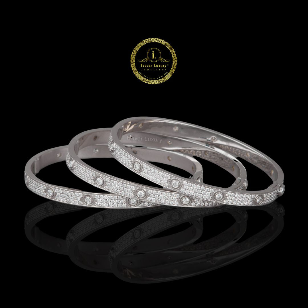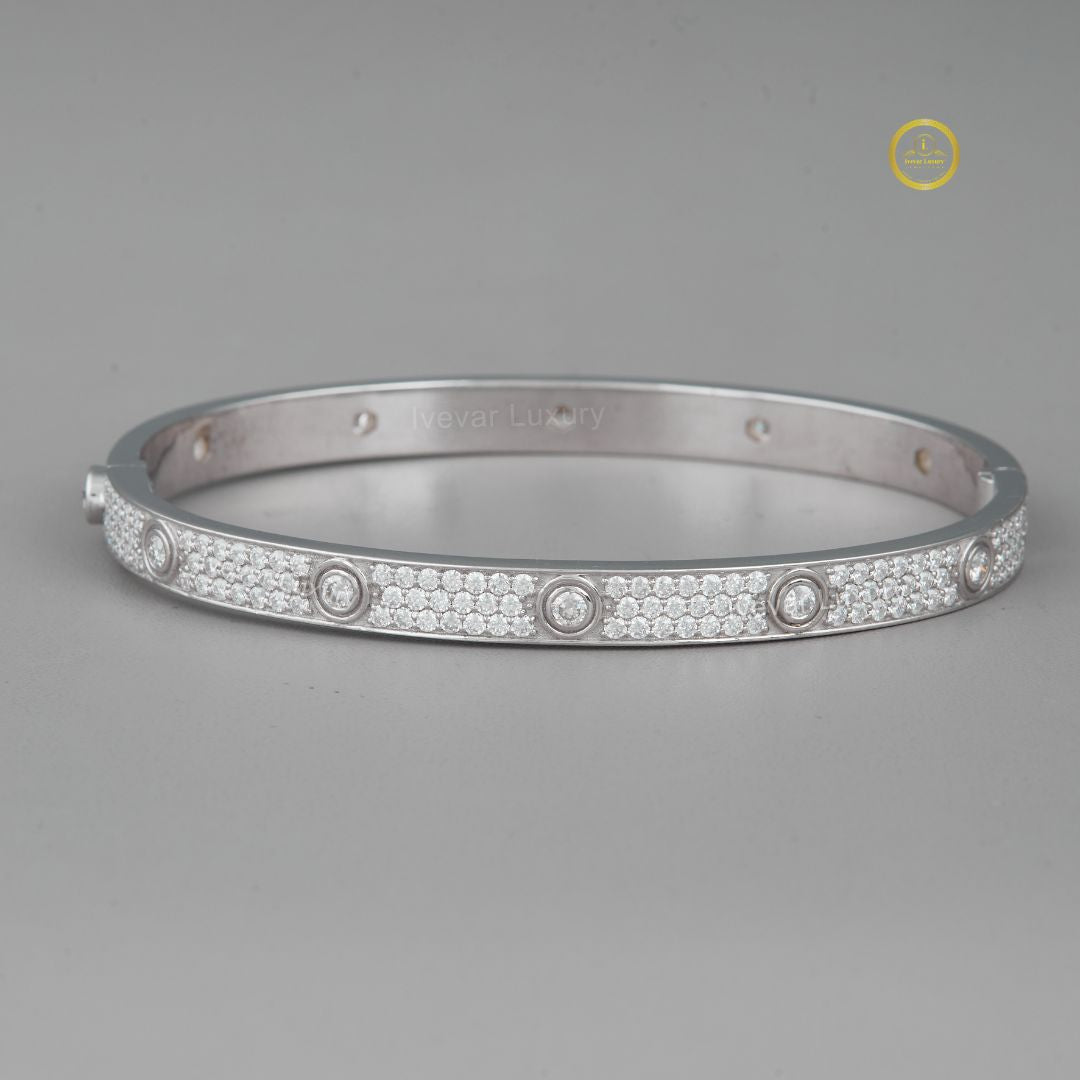 This is an elegant bangle bracelet from Ivevar Luxury, distinguished by its solid, smooth silhouette and high-volume sparkle. The bangle is crafted in a bright, silver-toned metal.