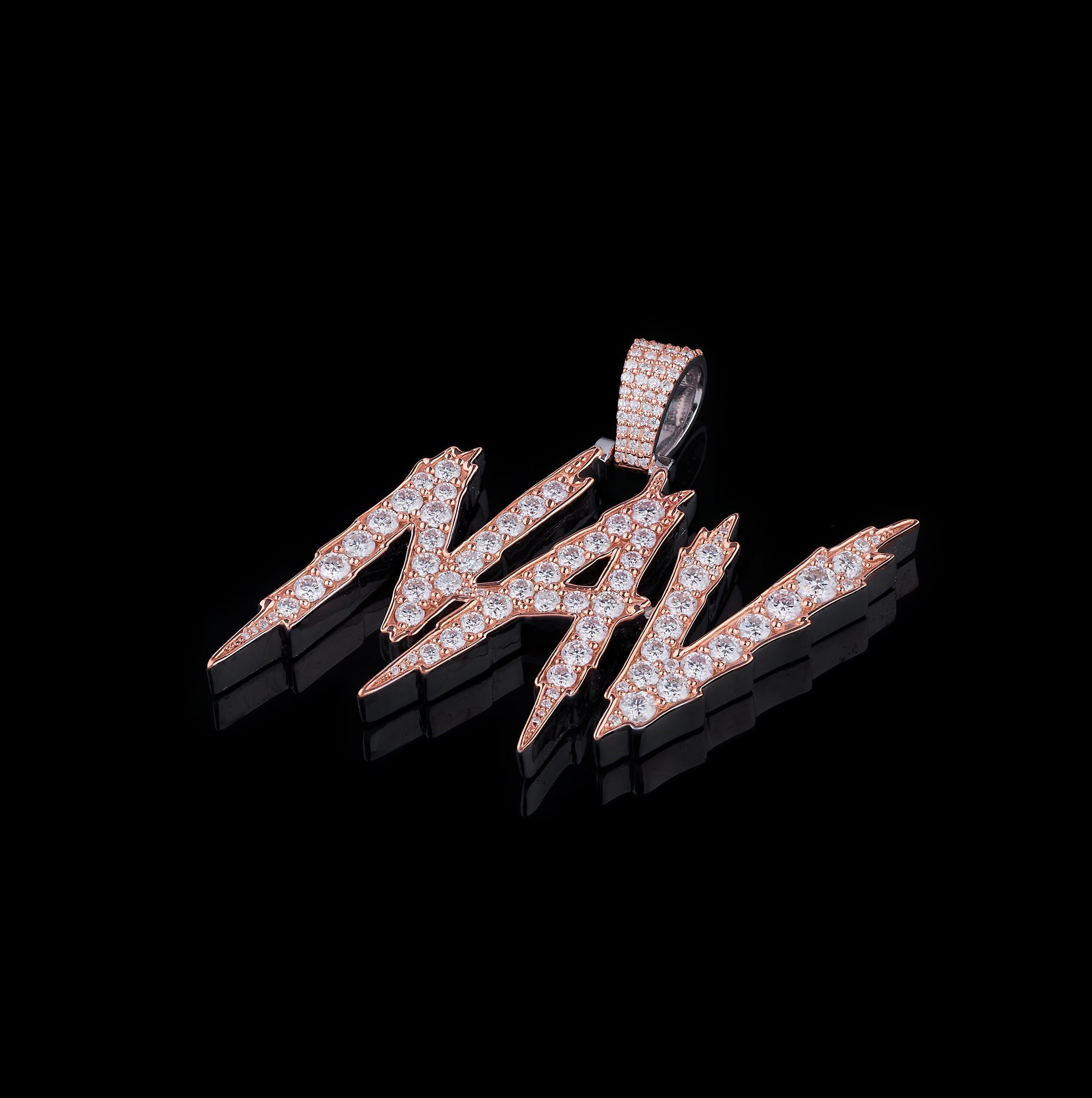 This is a dynamic and aggressive custom name pendant by Ivevar Luxury, featuring a unique lightning bolt design.