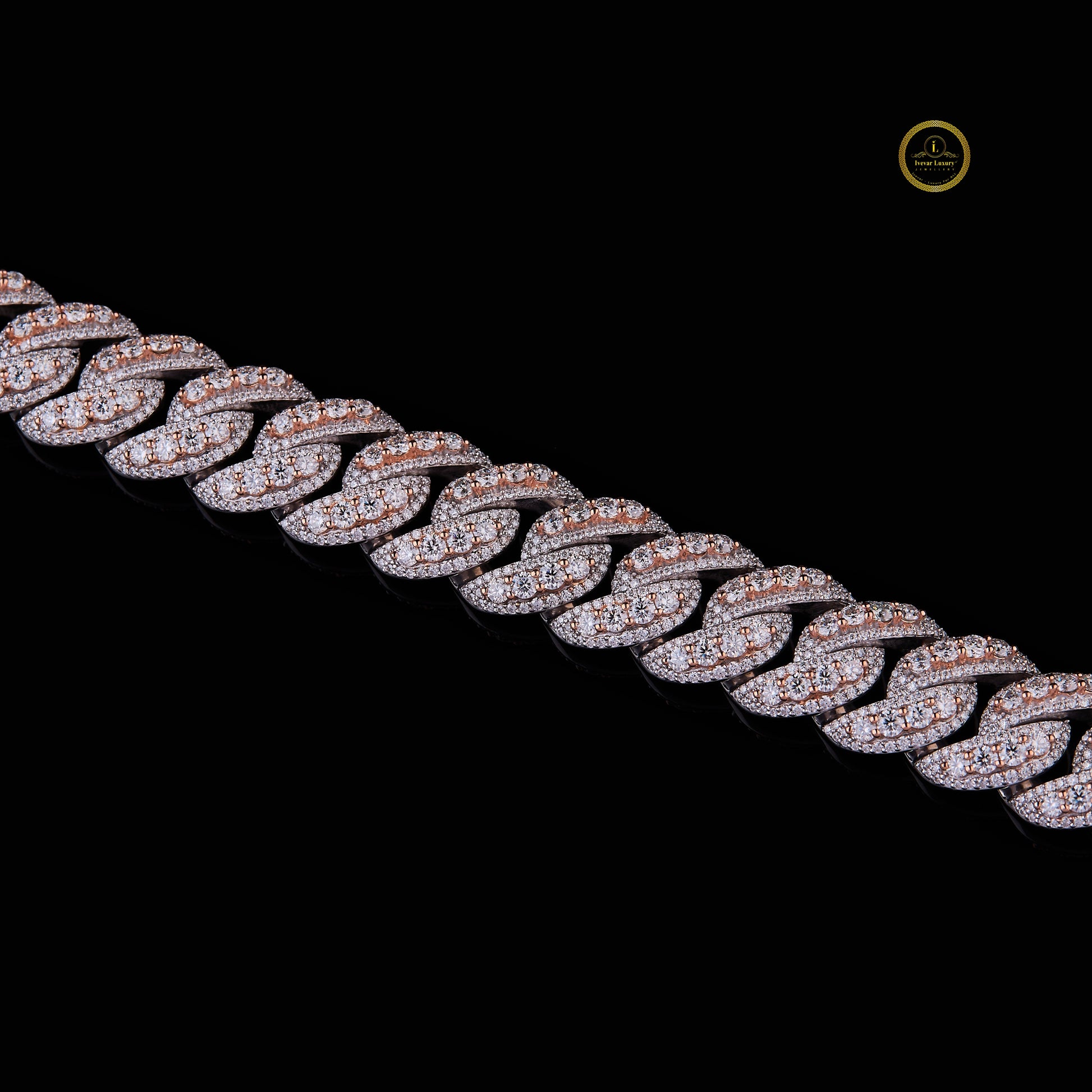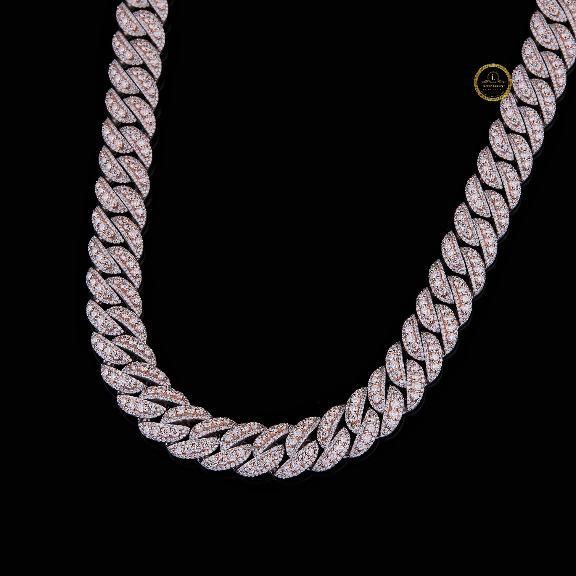 This luxurious custom chain is a modified Cuban Link design, featuring slightly elongated and curved links that are completely enveloped in sparkling pavé-set lab-grown diamonds. This arrangement maximizes brilliance and presents a high-end, continuous diamond flow.