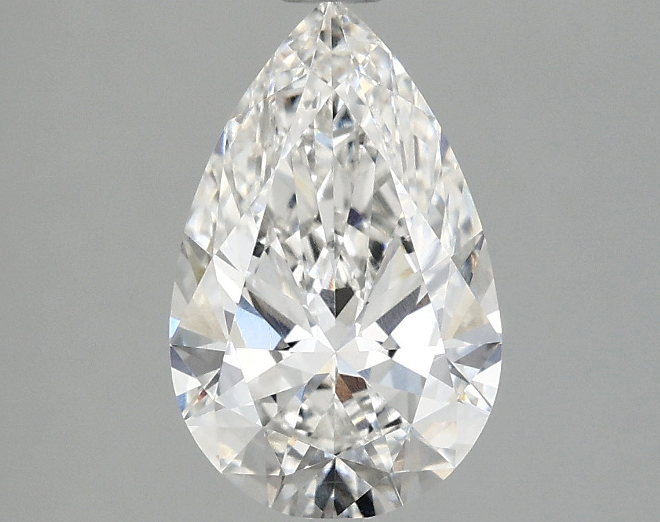 A mesmerizing pear-cut moissanite, embraced by intricate milgrain detailing and hand-engraved scrollwork in a vintage-inspired setting.