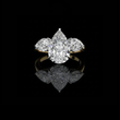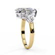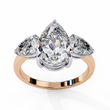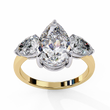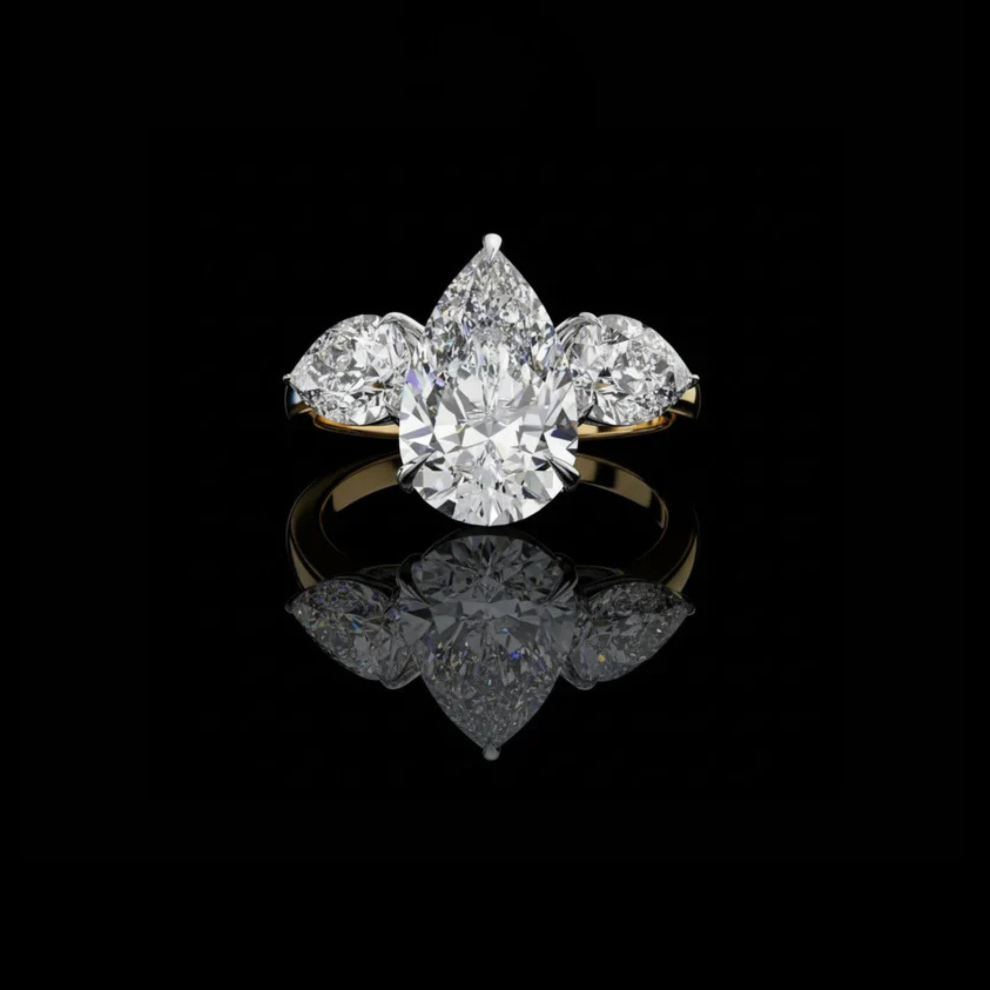 This exquisite three-stone ring showcases a breathtaking pear-cut center stone paired with two perfectly matched side pears, creating a radiant display of brilliance and symmetry. Set on a sleek gold band, the design blends timeless elegance with modern sophistication, offering exceptional sparkle from every angle. A captivating choice for those who appreciate refined luxury and standout beauty in a classic yet distinctive silhouette.