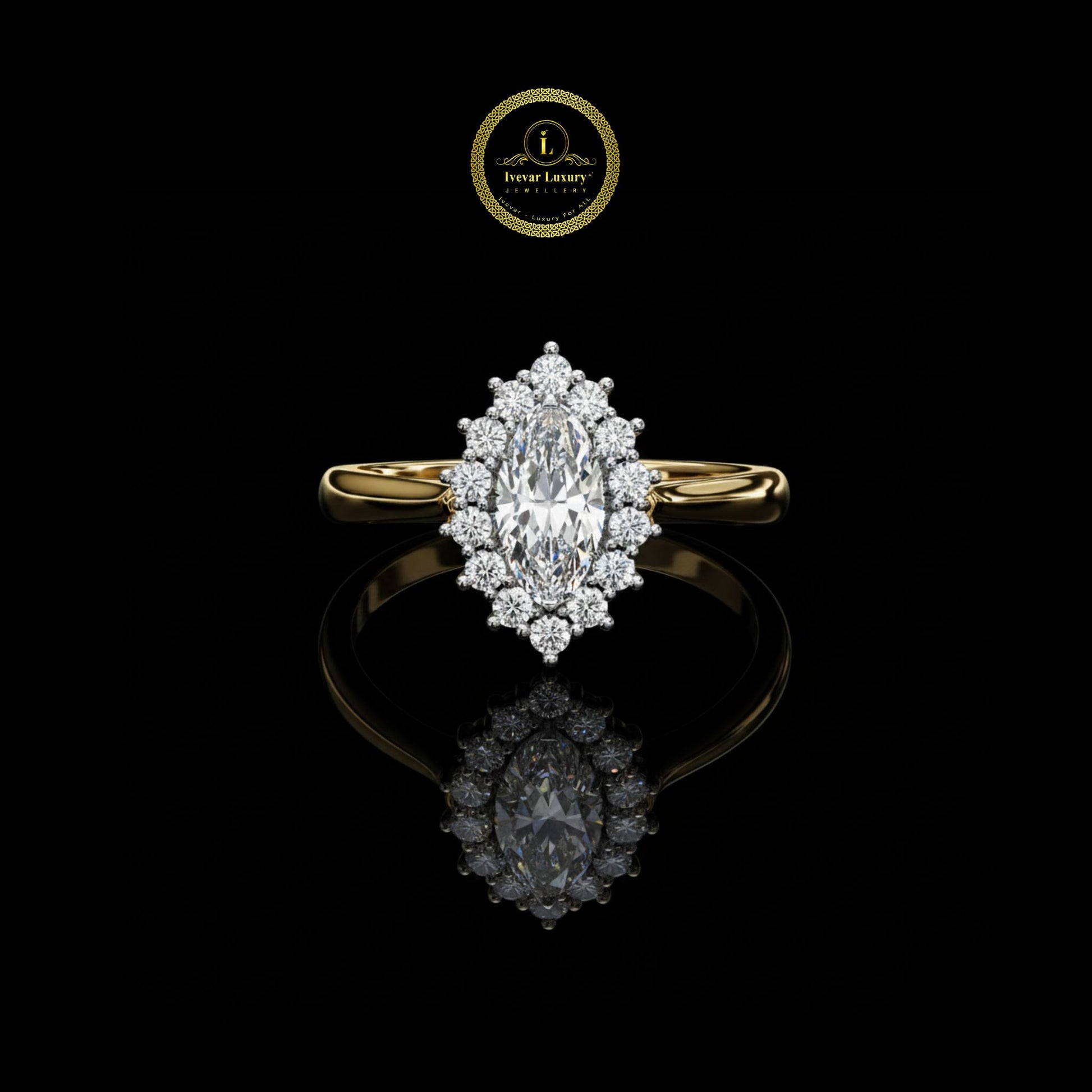 0.47 CT Exquisite Solid Gold Halo Lab Marquise Cut Diamond Ring Party Jewelry Gift For Special Occasion