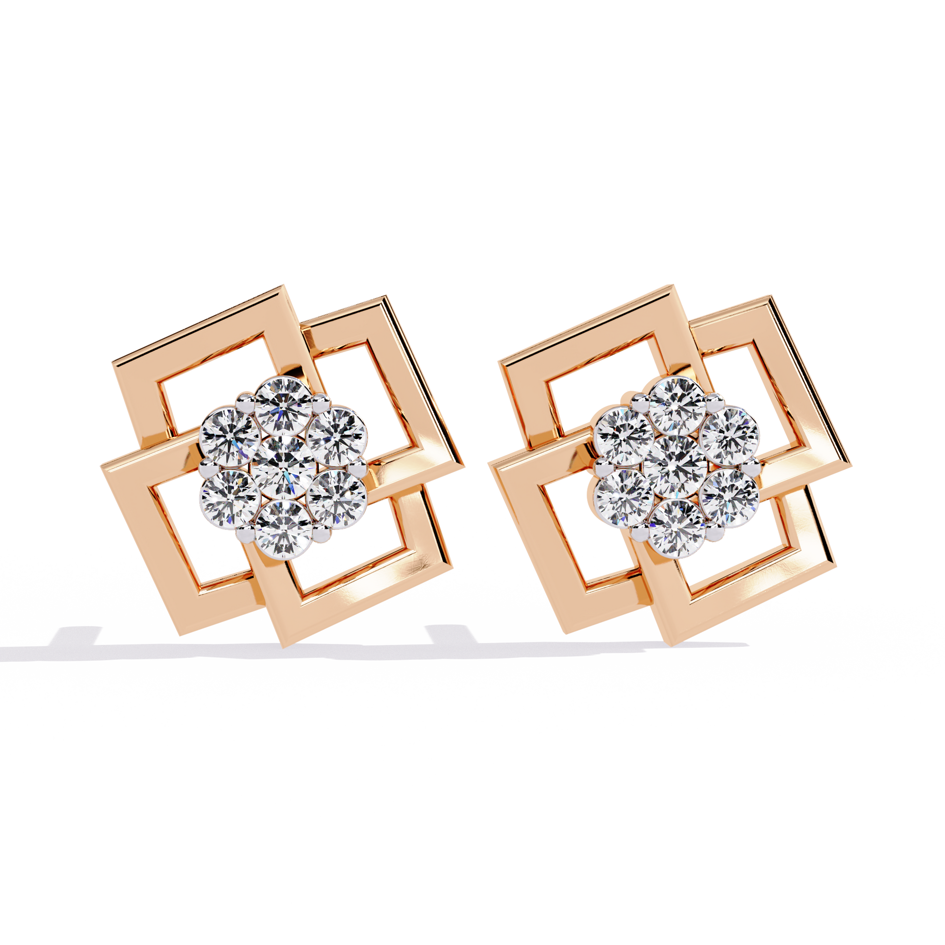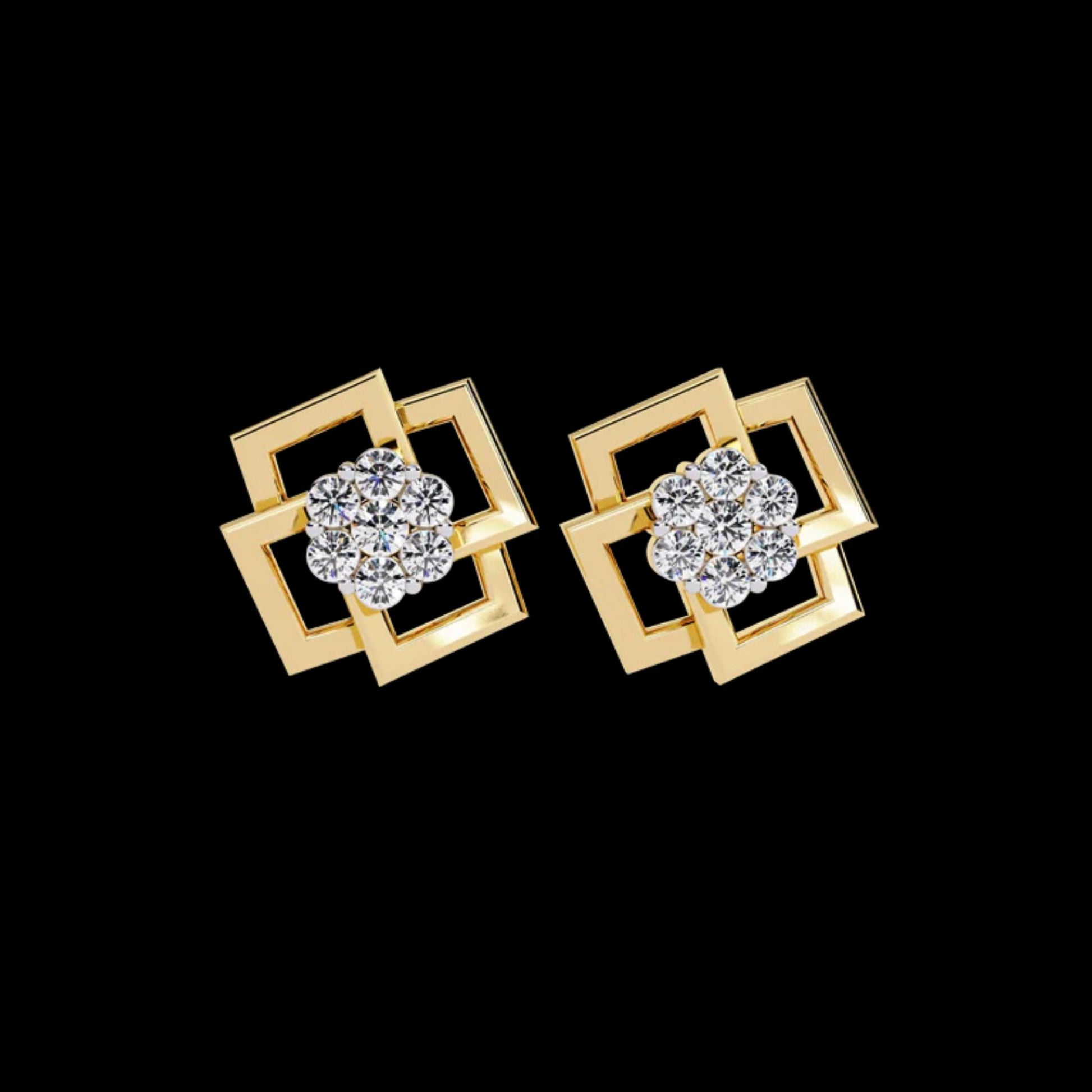 The Geometric Floral Diamond Stud Earrings blend architectural precision with timeless grace. Expertly crafted in radiant gold, each earring features interlocking open squares framing a brilliant floral cluster of round-cut diamonds. The design celebrates harmony between structure and sparkle — bold geometry softened by organic brilliance. Perfect for both day and evening wear, these earrings embody modern sophistication and enduring charm, making them a striking addition to any fine jewelry collection by Ivevar Luxury Jewels.