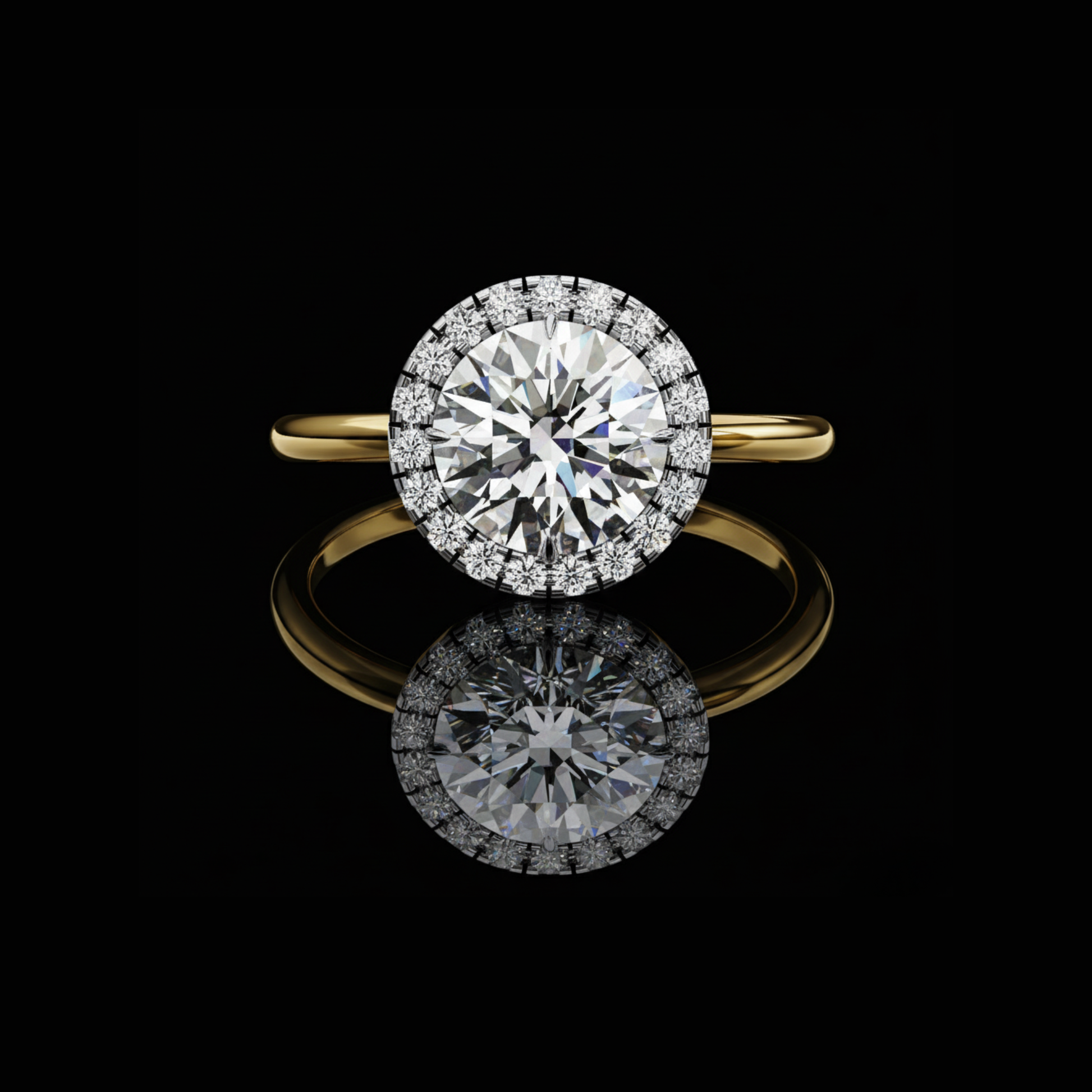 Discover pure brilliance with this round-cut halo diamond ring, exquisitely crafted by Ivevar Luxury. The dazzling round center stone is surrounded by a full halo of shimmering diamonds, enhancing its radiance and fire. A sleek band adds warmth and sophistication, creating a timeless and luxurious aesthetic. Designed for those who appreciate elegance, this ring captures the perfect blend of modern sparkle and classic beauty. Celebrate your most meaningful moments with the unmistakable shine of Ivevar Luxury craftsmanship.