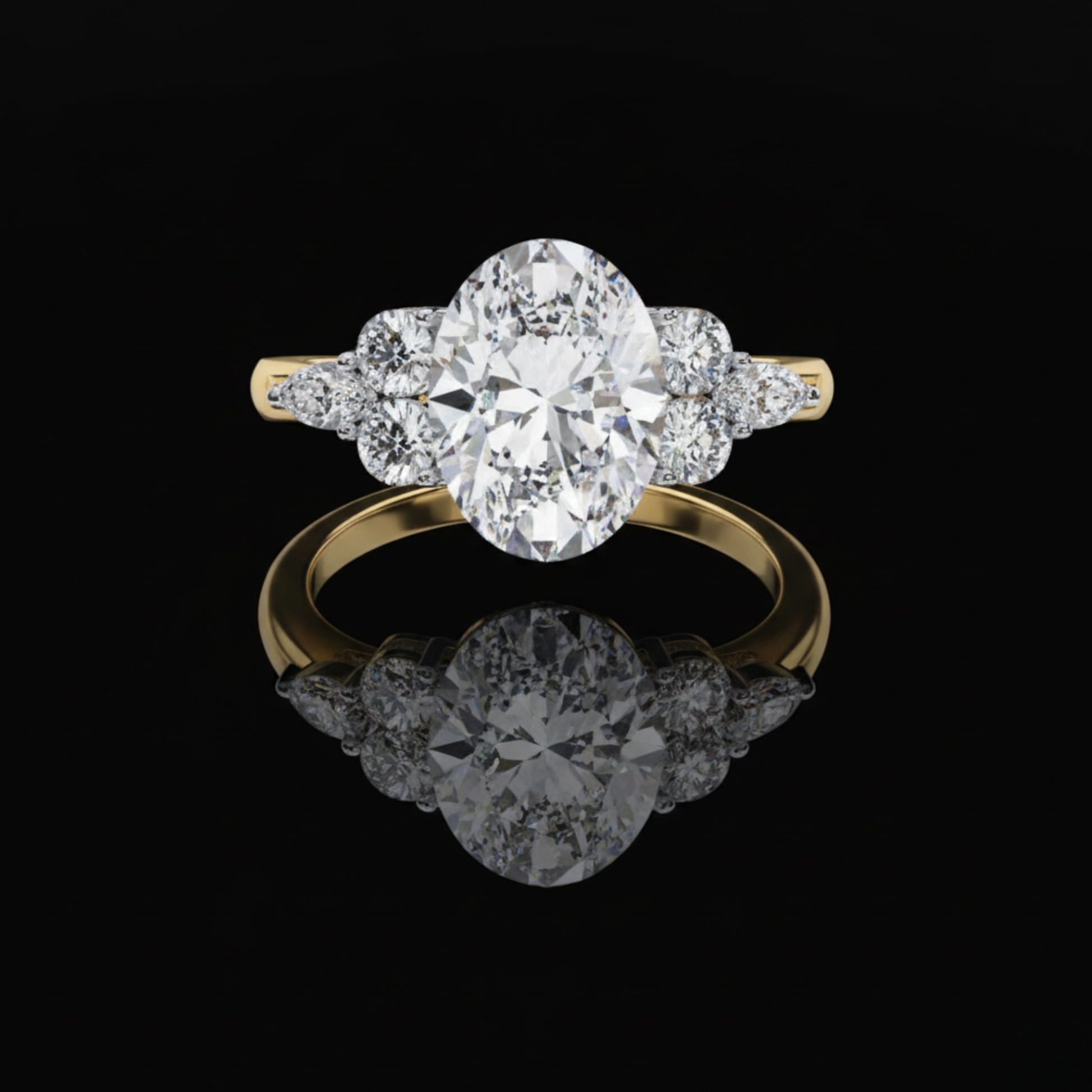 Brilliant Oval Ring with Graduated Side Stones