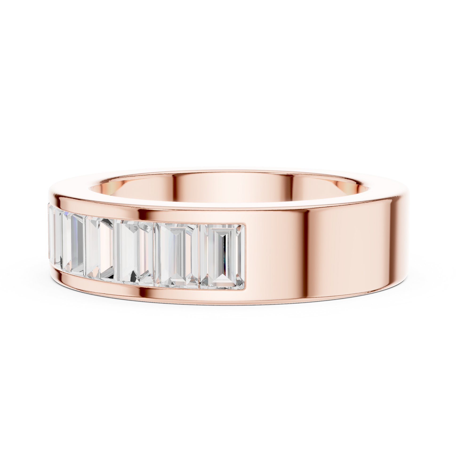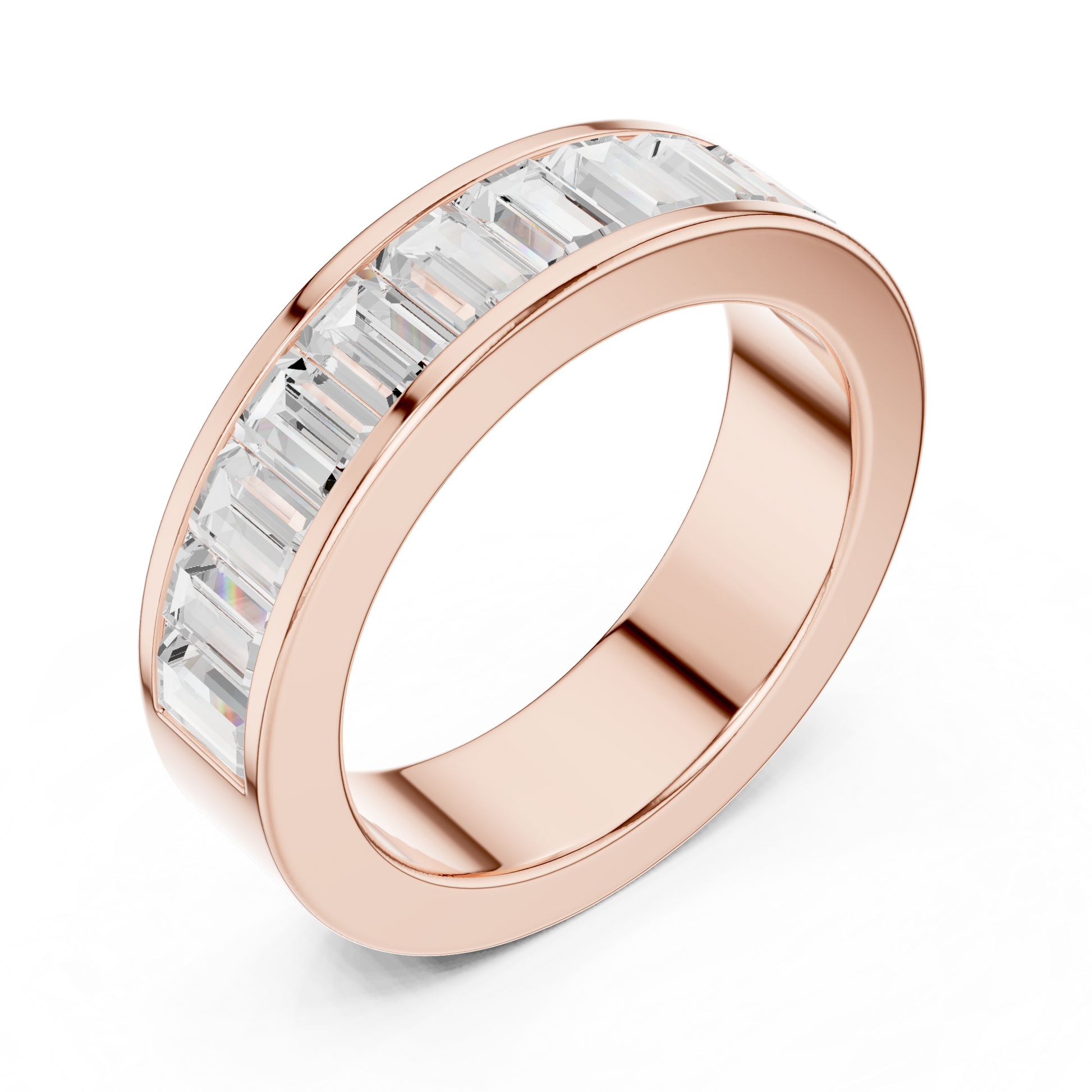 This Royal Baguette Diamond Eternity Band features a flawless row of precisely cut baguette diamonds, set seamlessly around a rich gold band. The sleek channel setting showcases a continuous stream of mirror-like brilliance, giving the ring a bold yet refined luxury appeal. Perfect as a wedding band, anniversary ring, or everyday statement piece, this design embodies modern elegance, high craftsmanship, and the signature excellence of Ivevar Luxury.