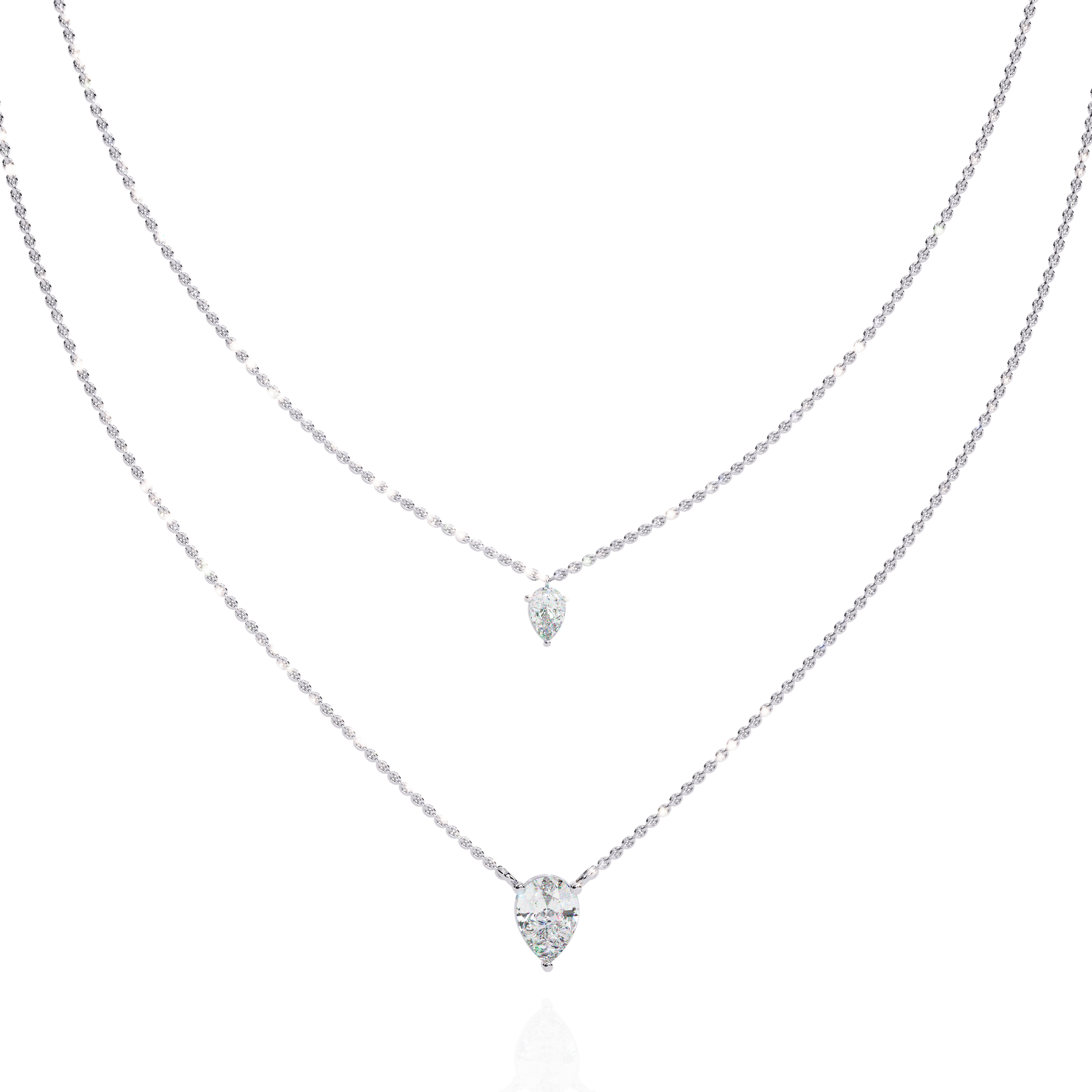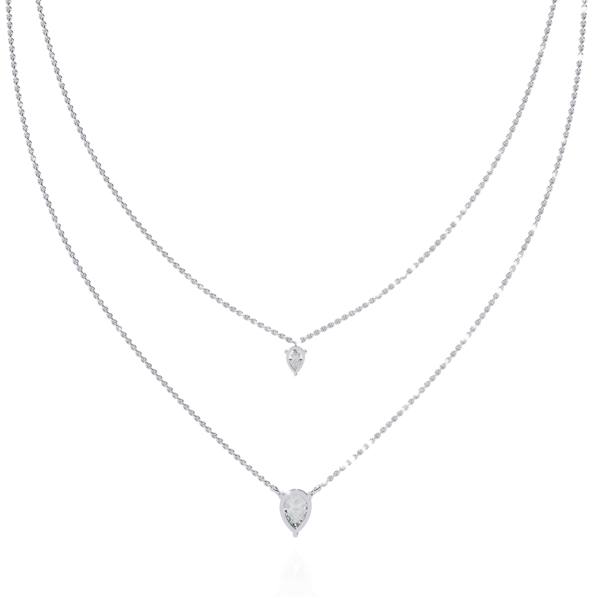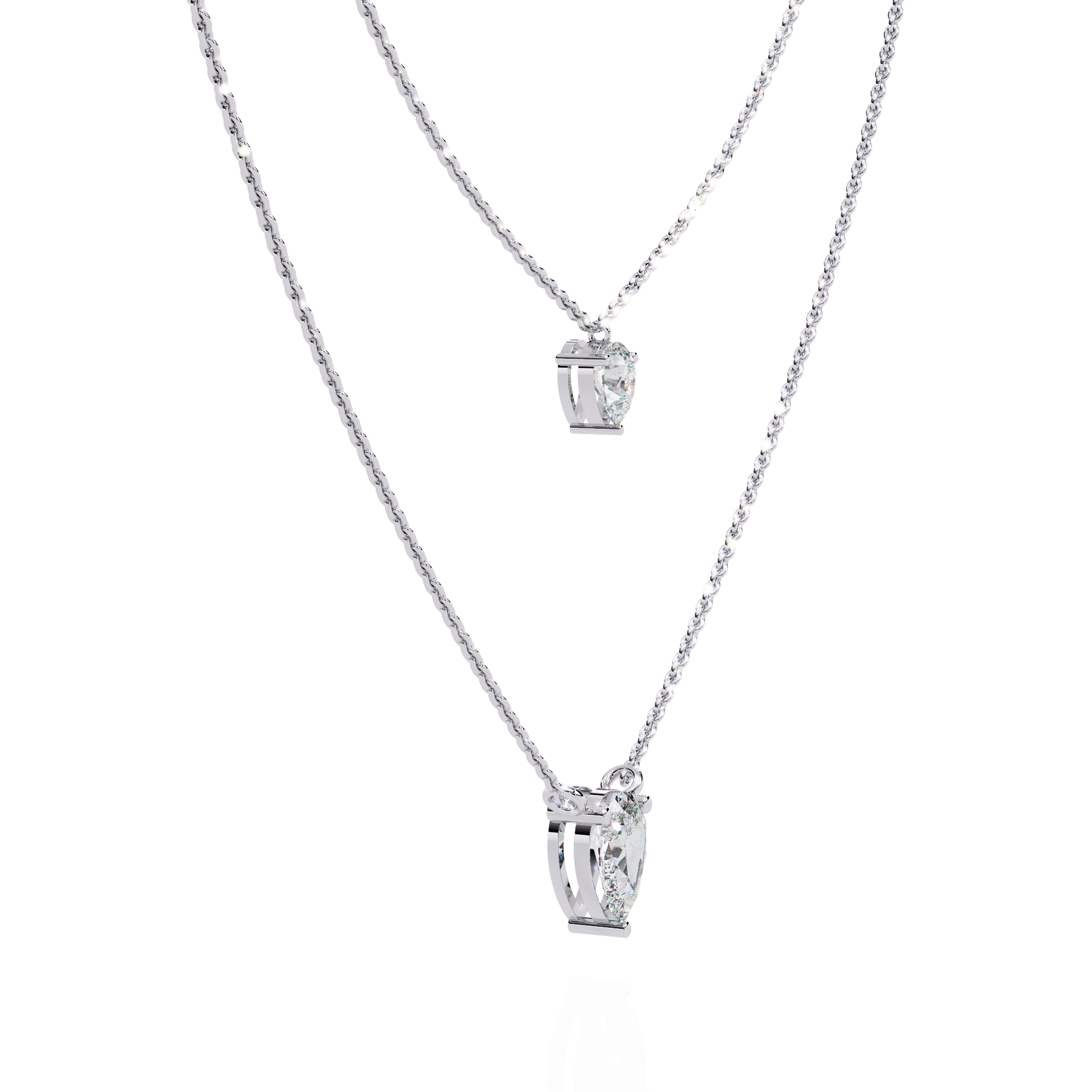 This elegant pendant necklace features a Stunning Double Layer Design crafted in radiant gold. Each delicate chain showcases a Pear Shaped Diamond—one smaller and one larger—creating a harmonious balance of sophistication and sparkle. The teardrop-shaped stones catch the light beautifully, making this piece perfect for both everyday elegance and special occasions by Ivevar. The design embodies timeless luxury and refined minimalism, ideal for those who appreciate understated glamour.
