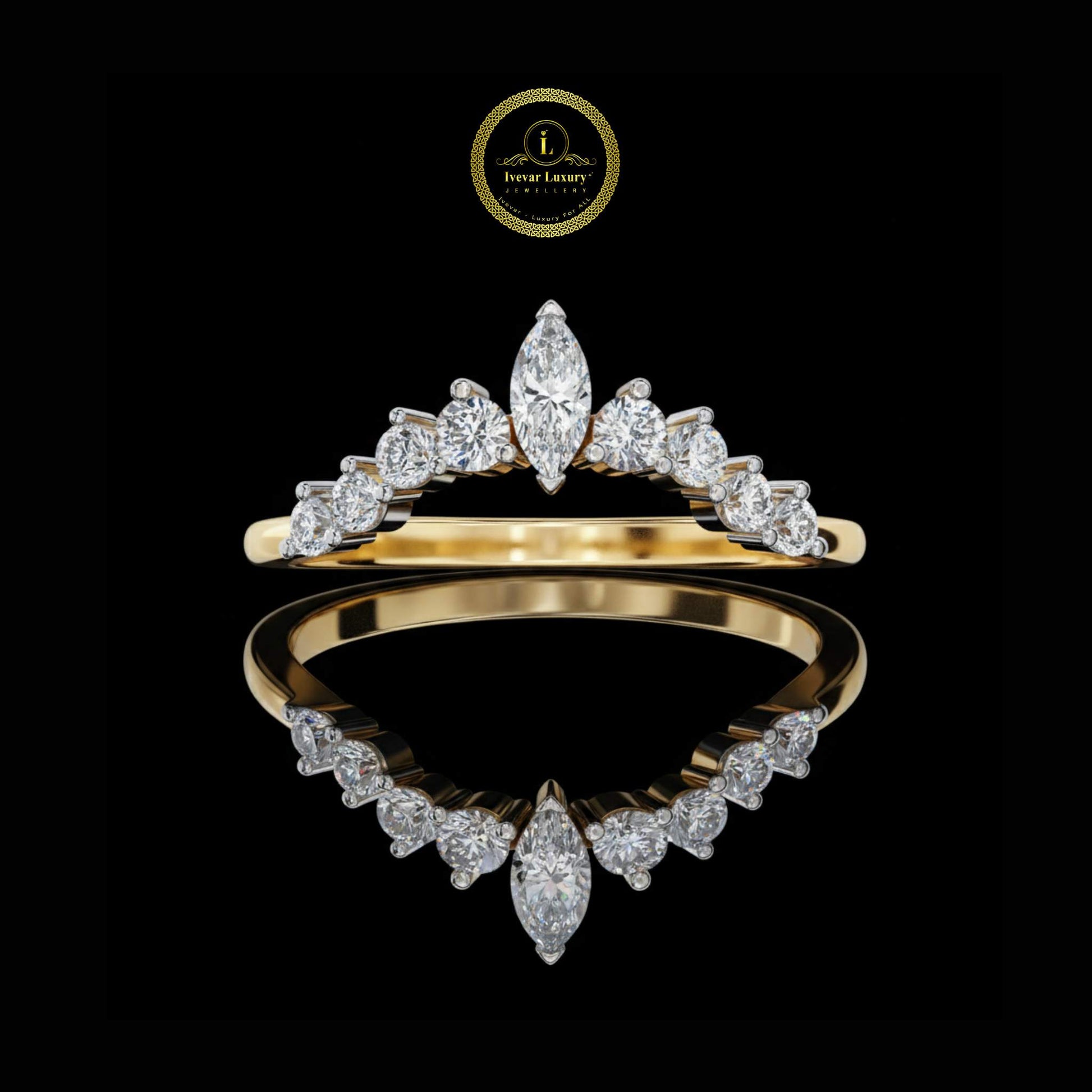 This exquisite ring features a marquise-cut diamond set at its center, surrounded by a graceful arrangement of brilliant accent stones that form a delicate crown-like silhouette. Crafted with a polished band, the design blends sophistication, romance, and modern elegance. Perfect as a statement piece, engagement ring, or an addition to a luxury jewelry collection, this piece radiates timeless beauty and refined craftsmanship.