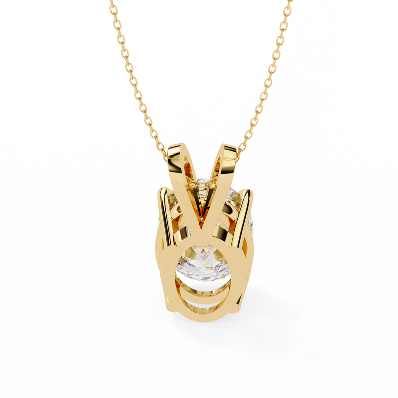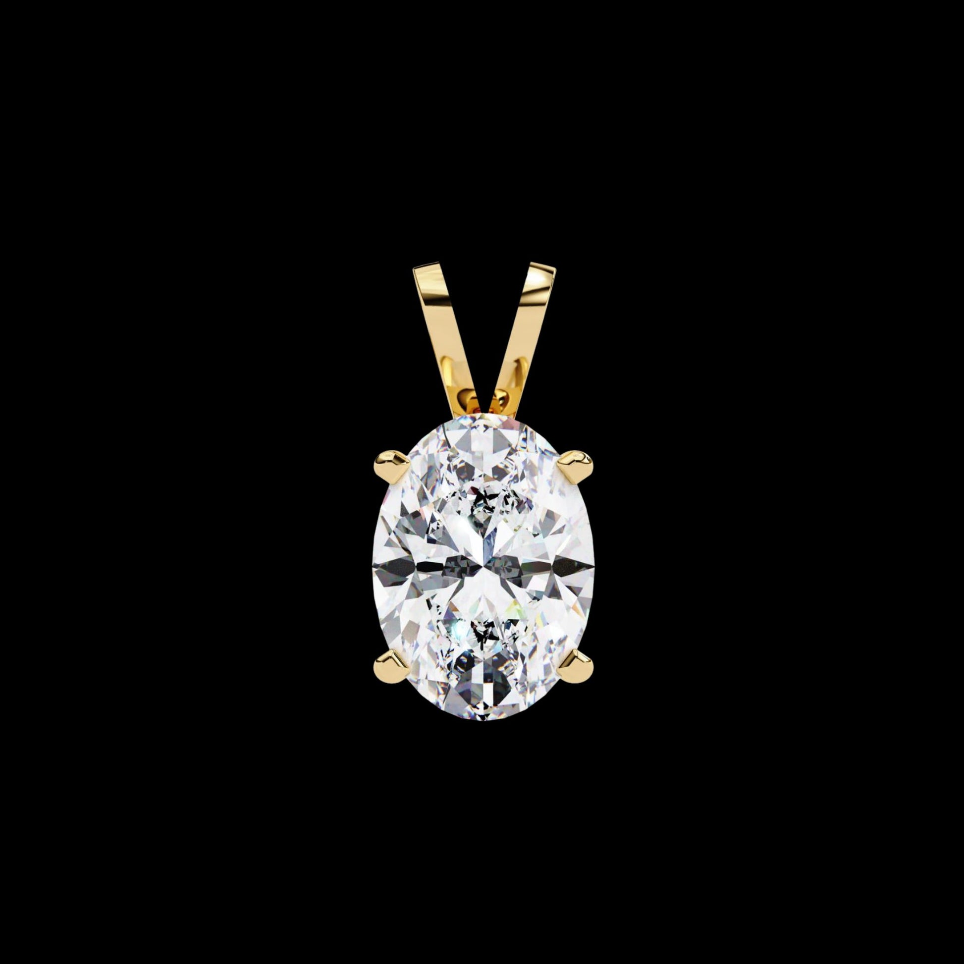 This exquisite pendant features a dazzling, brilliant Oval Cut Solitaire Diamond, held securely by a classic four-prong setting in polished gold. The elongated oval shape maximizes the stone's perceived size and sparkle, offering a sophisticated and flattering look. Suspended from a simple yet elegant bail, this piece is a timeless symbol of luxury and enduring style. Perfect for everyday wear or a special occasion, it is a versatile statement piece that highlights the diamond's exceptional clarity and brilliance. This is a signature design from Ivevar Luxury Jewelry.