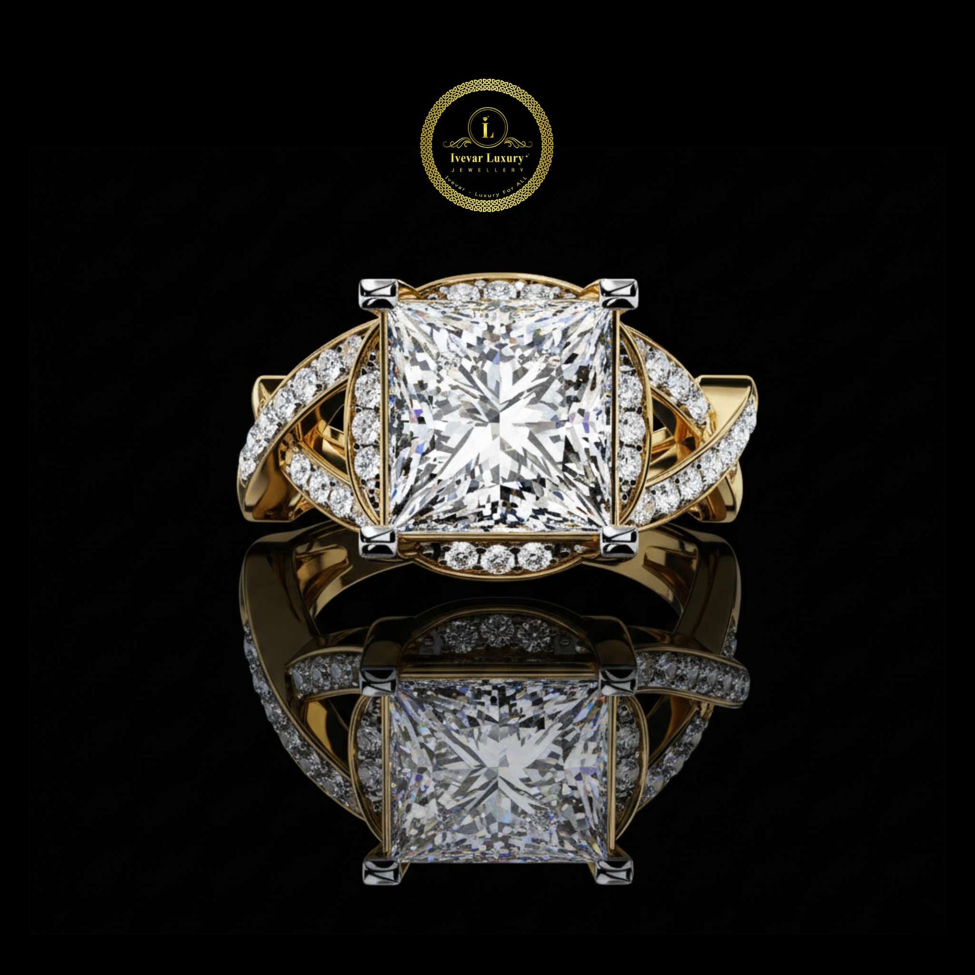 3.19 CT Classic Halo Lab Grown Princess Cut Diamond Ring For Wedding Bridal Jewelry