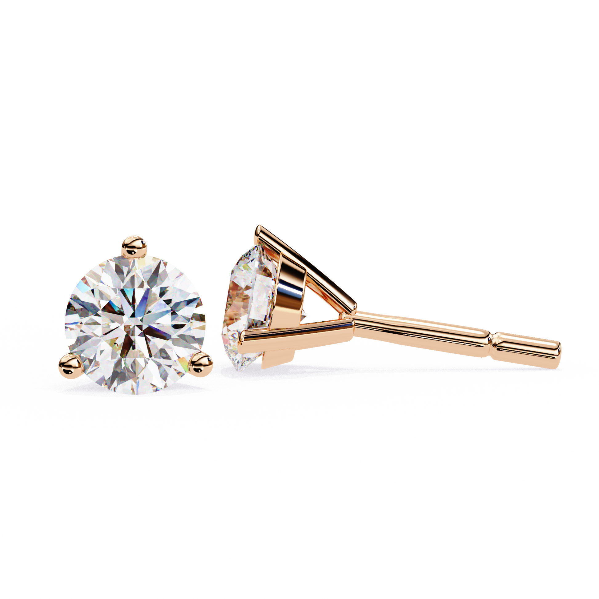 These stunning stud earrings feature radiant round brilliant-cut stones secured in an elegant three-prong gold setting, designed to maximize sparkle and sophistication. The minimalist prong design allows light to enter the stones from every angle, creating exceptional brilliance and a timeless, versatile style perfect for everyday wear or special occasions. Crafted with precision and attention to detail, these earrings offer a refined touch of luxury that complements any jewelry collection.