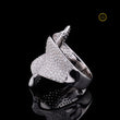 This elegant piece showcases a beautifully sculpted leaf-inspired design, fully adorned with pave-set diamonds that create a radiant, shimmering effect. The ring features an artistic curved silhouette, giving it a modern and expressive character. Its smooth silver finish enhances the brilliance of the stones, making it an exceptional accessory for those who appreciate statement jewelry, luxury craftsmanship, and unique, nature-inspired aesthetics. Perfect for elevating both formal and everyday looks, this ring embodies refinement and bold elegance.