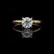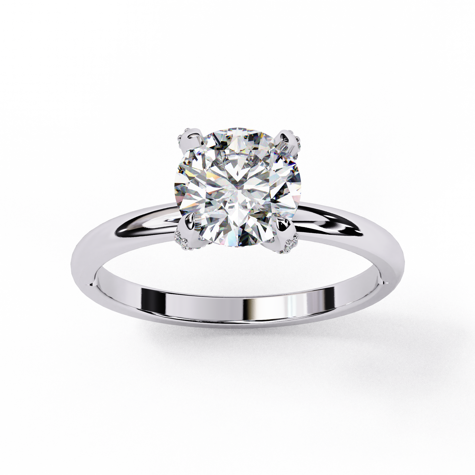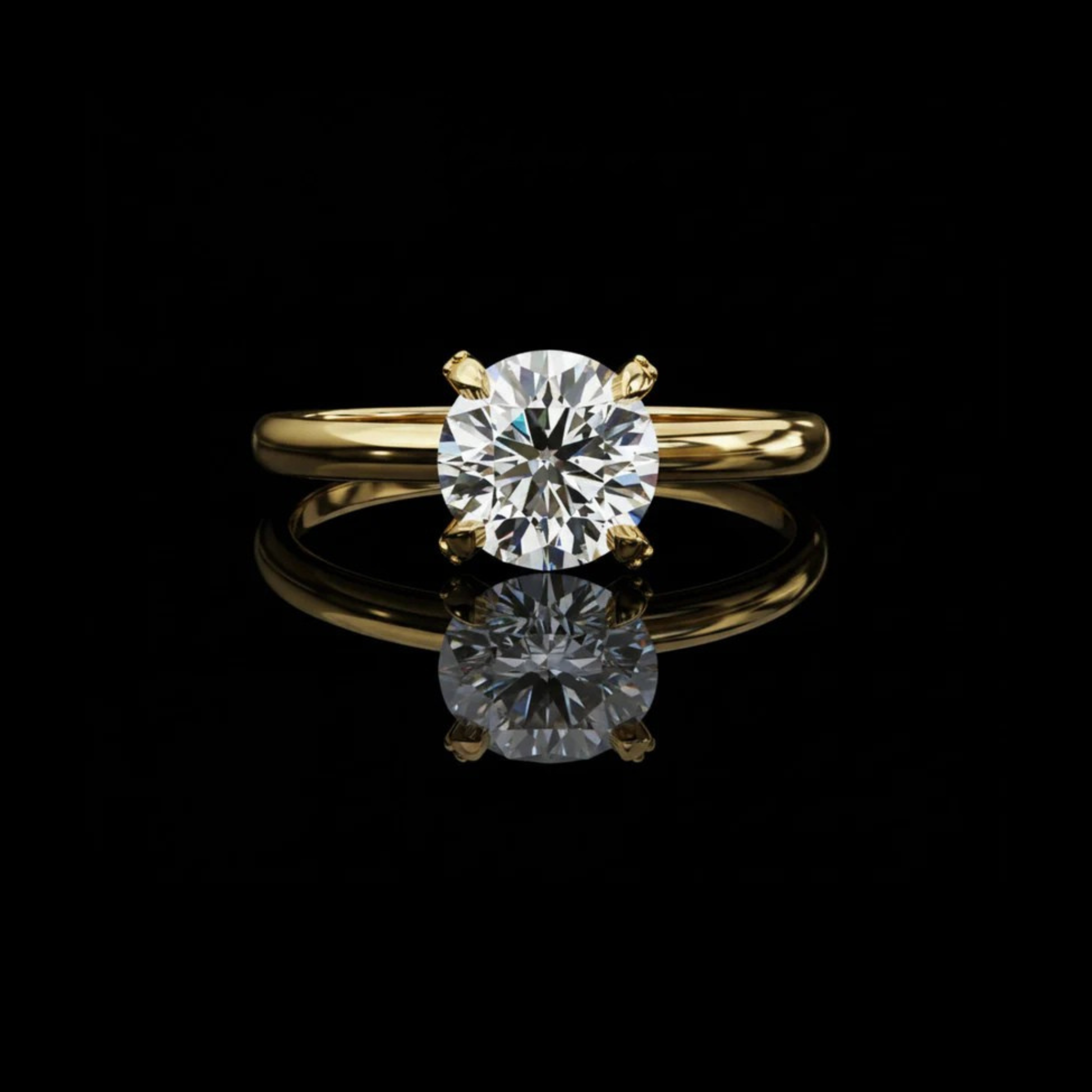 This solitaire engagement ring features a classic round diamond, set in a four-prong setting that allows the diamond to shine brilliantly from every angle. The smooth, polished band enhances the diamond's sparkle, making it a perfect symbol of elegance and enduring love. The design is simple yet sophisticated, offering both timeless appeal and luxury. Whether for an engagement or a special occasion, this ring is the ideal choice for those who appreciate minimalist beauty with a touch of luxury.
