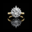 This captivating ring features a brilliant round center diamond accented by a stunning half sunburst halo of sparkling stones, creating a radiant, crown-like effect. The pear-shaped and round accent diamonds add depth and elegance, while the gold band offers a warm, timeless contrast. Perfect for someone who wants a ring that feels unique, regal, and undeniably eye-catching.