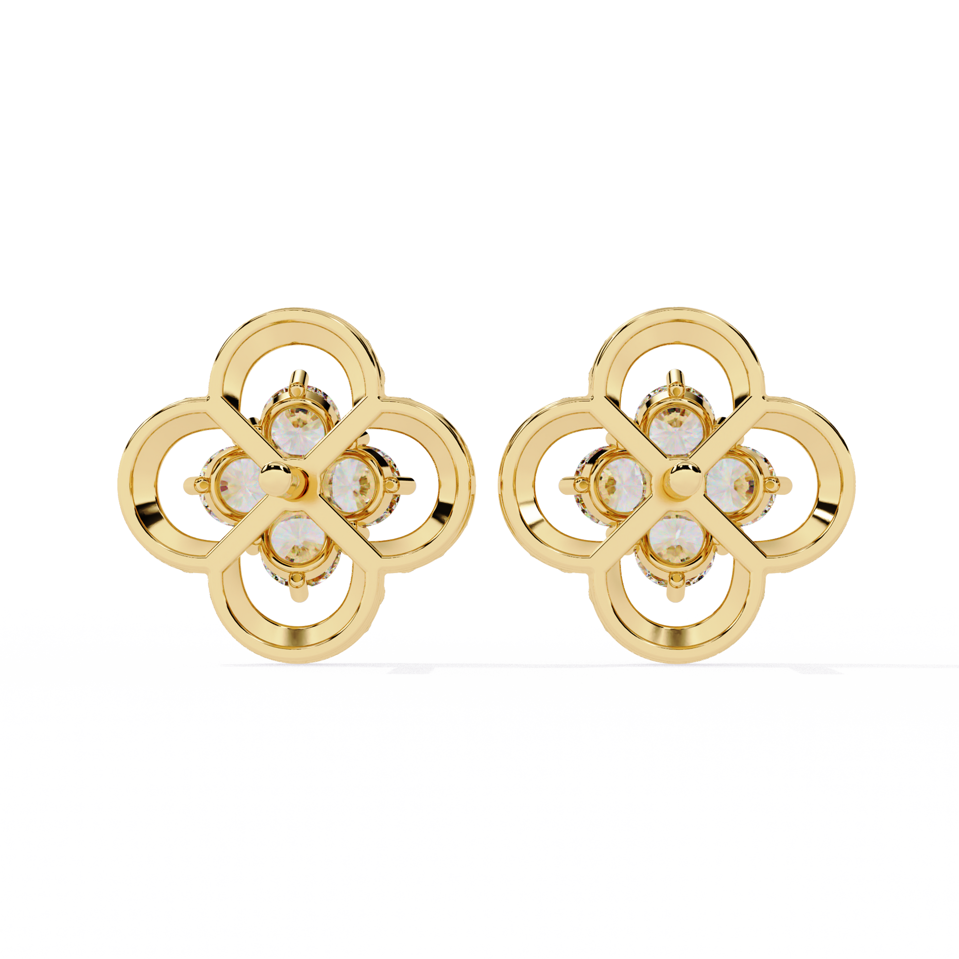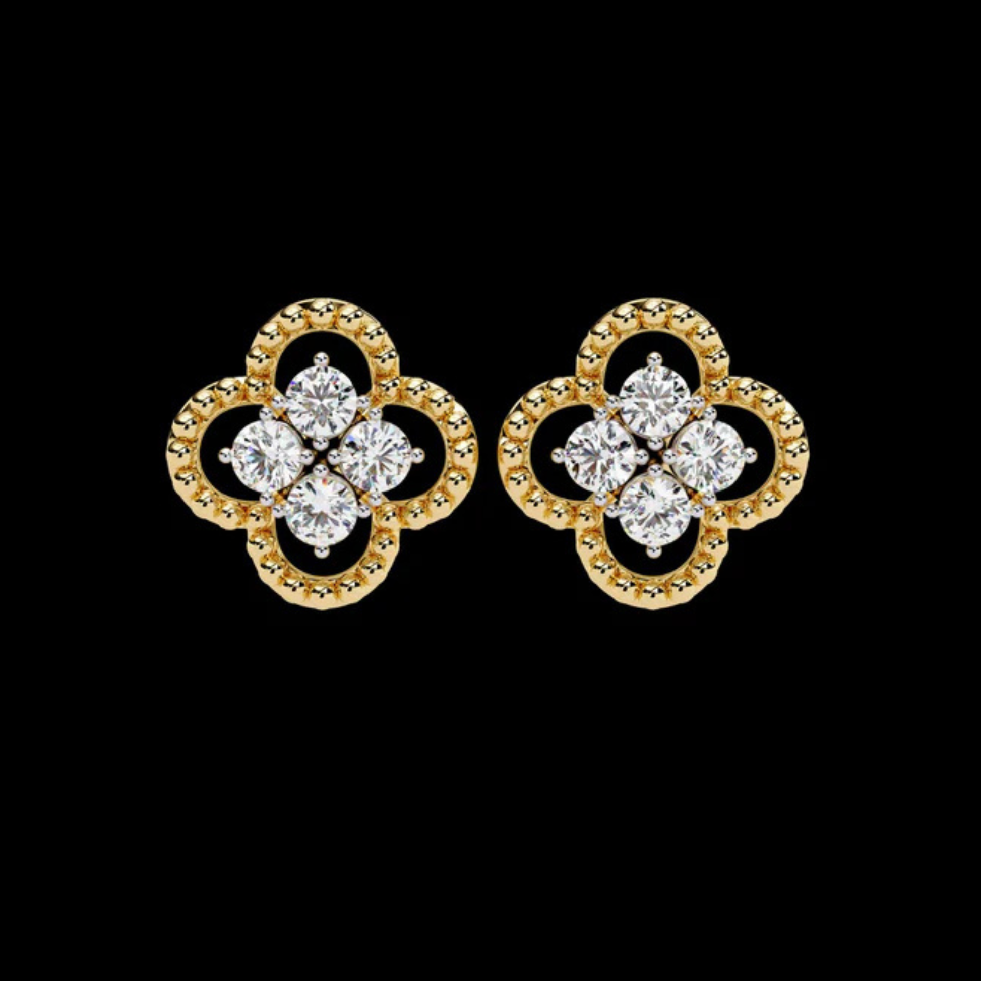 Celebrate radiant grace with the Golden Clover Diamond Stud Earrings by Ivevar Luxury Jewels. Crafted in luminous yellow gold, each earring blossoms into a four-petal clover — a symbol of luck and eternal beauty. At its heart, a quartet of meticulously set round-cut diamonds radiates brilliance, capturing light from every angle. Perfect for those who treasure understated opulence, the Golden Clover Diamond Stud Earrings embody harmony, heritage, and everlasting charm.
