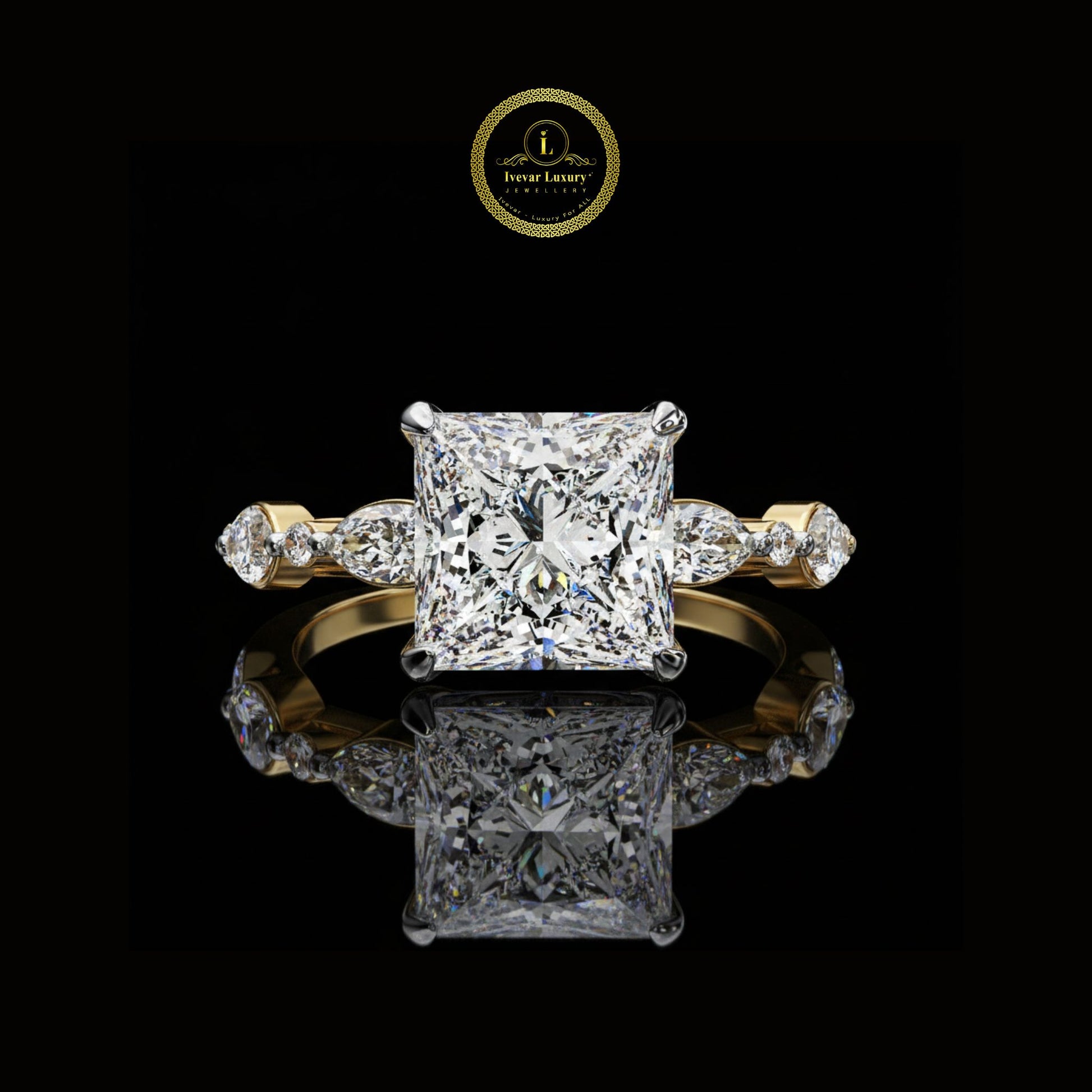 2.28 CT Sparkling Lab Grown Princess Cut Diamond Pave Ring Solid Real Gold Engagement Jewelry