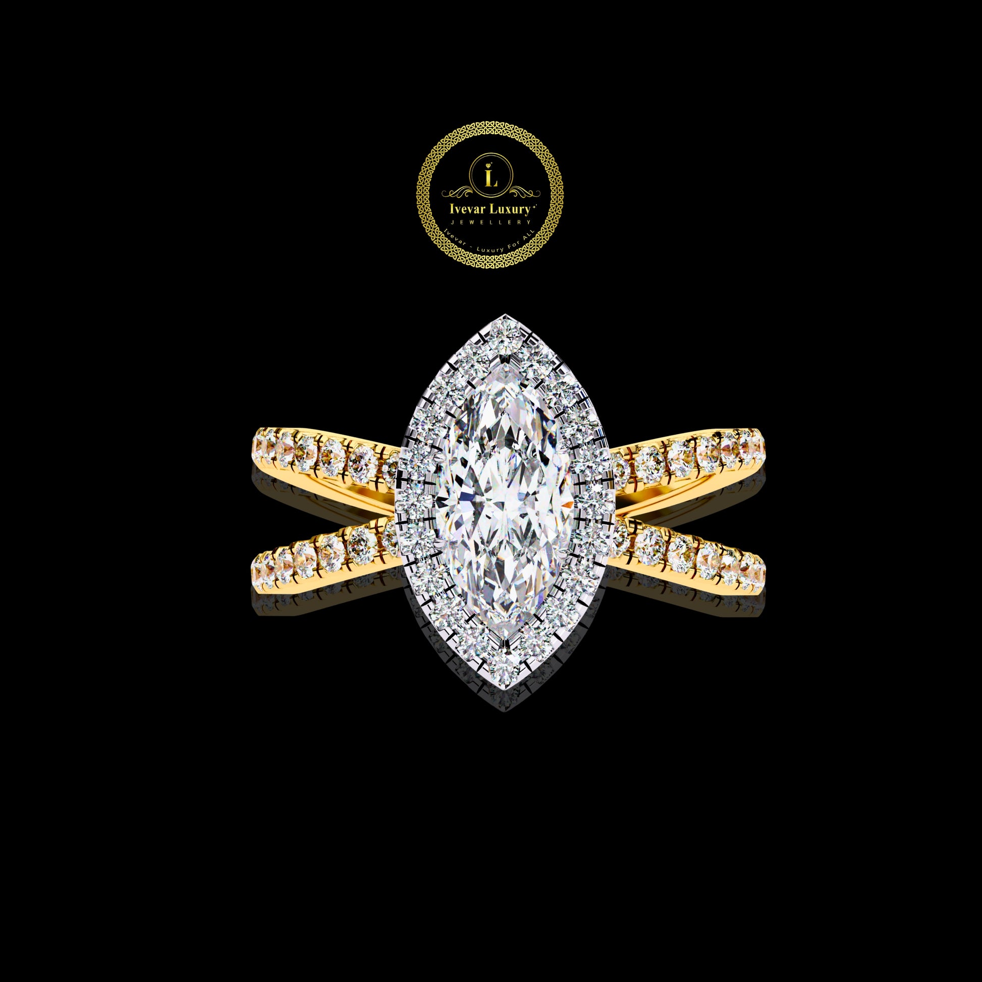 Statement Marquise Moissanite Diamond Ring Vintage Gold by Ivevar