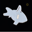 That image showcases a custom-designed shark pendant, richly paved with lab-grown diamonds. The piece features a mix of diamond cuts, including prominent baguette cuts to form the "SHARK" text across the body, complemented by round brilliant cuts covering the rest of the pendant.