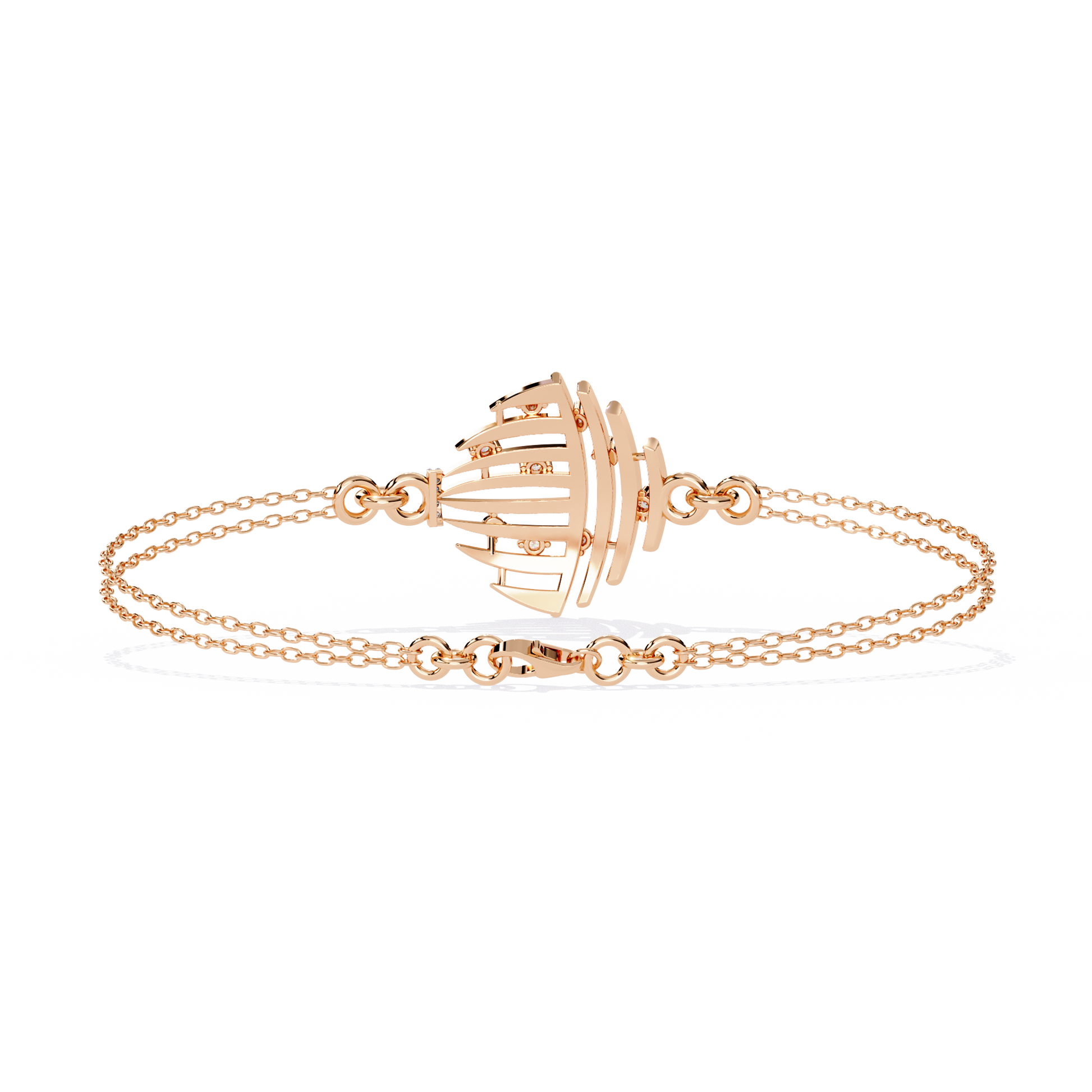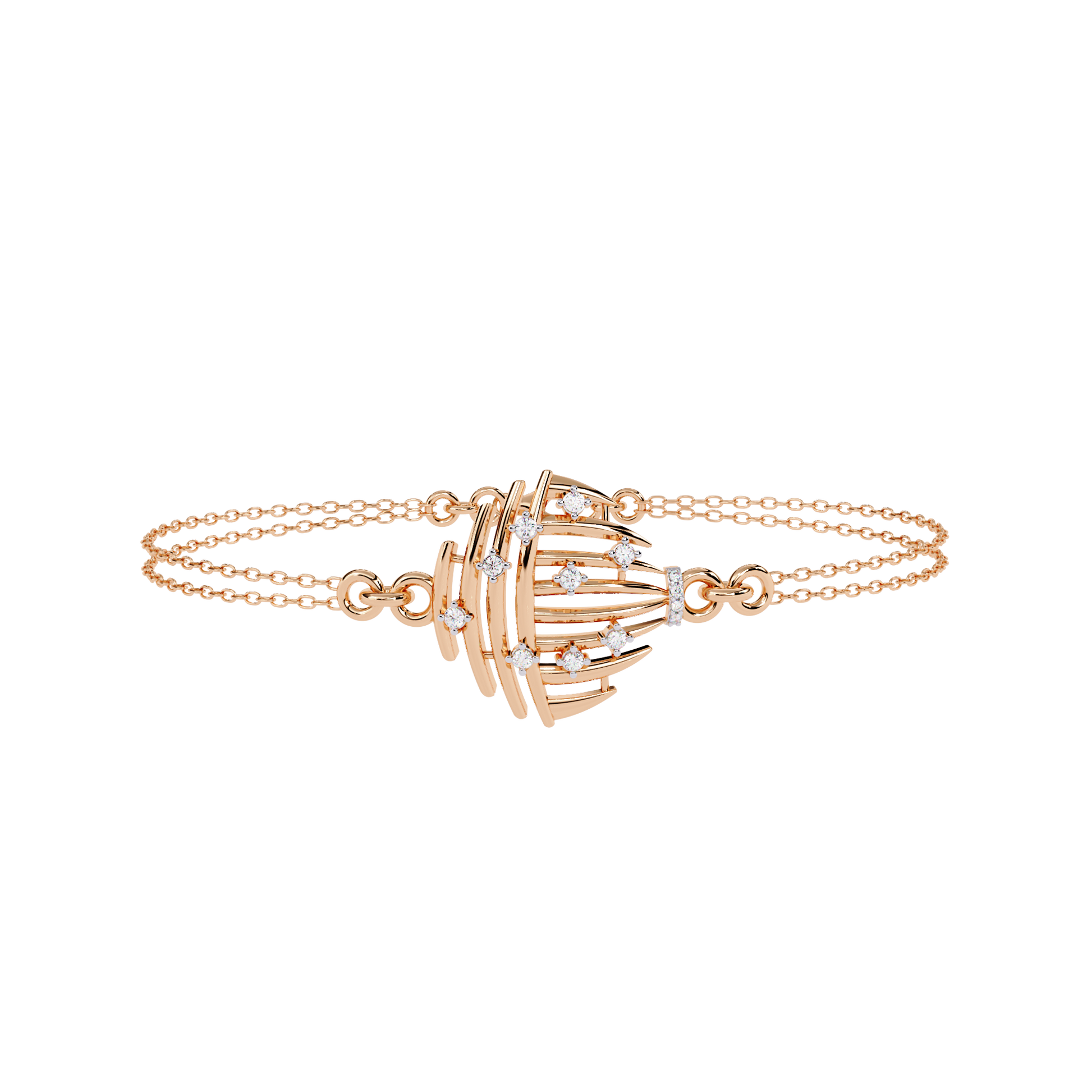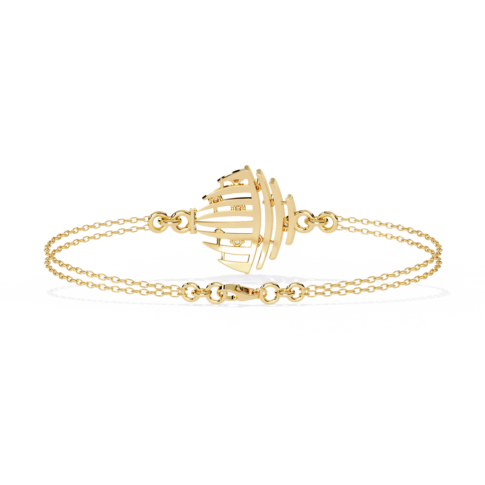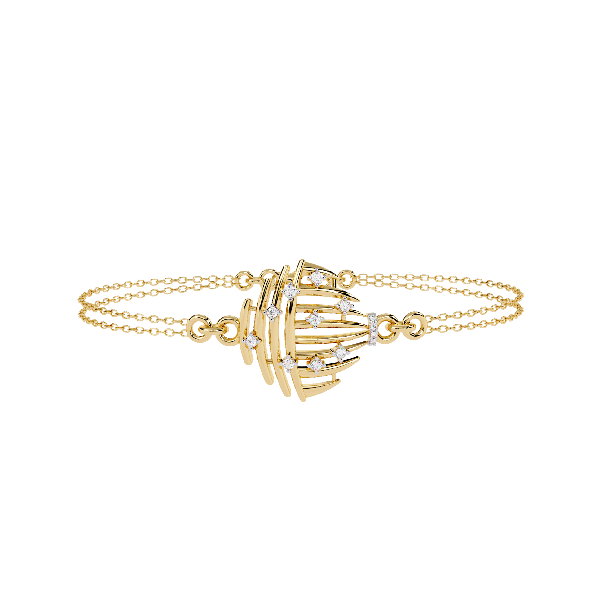 This stunning bracelet features a dual gold chain design paired with a captivating spiral dome centerpiece, beautifully accented with sparkling diamonds. Its artistic craftsmanship and contemporary elegance make it a standout accessory for those who appreciate refined luxury. Perfect for special occasions or elevating everyday style, this bracelet radiates sophistication and timeless beauty.