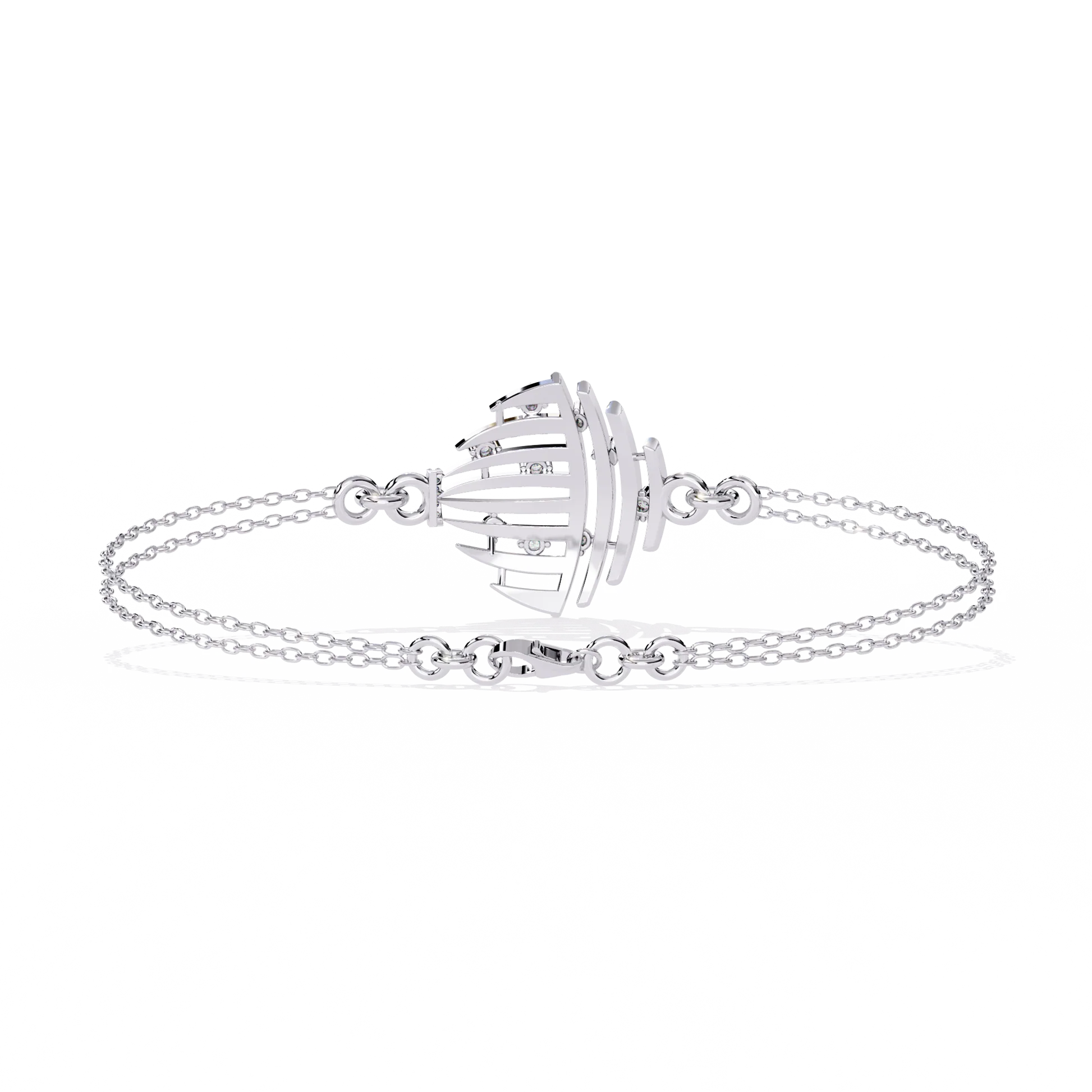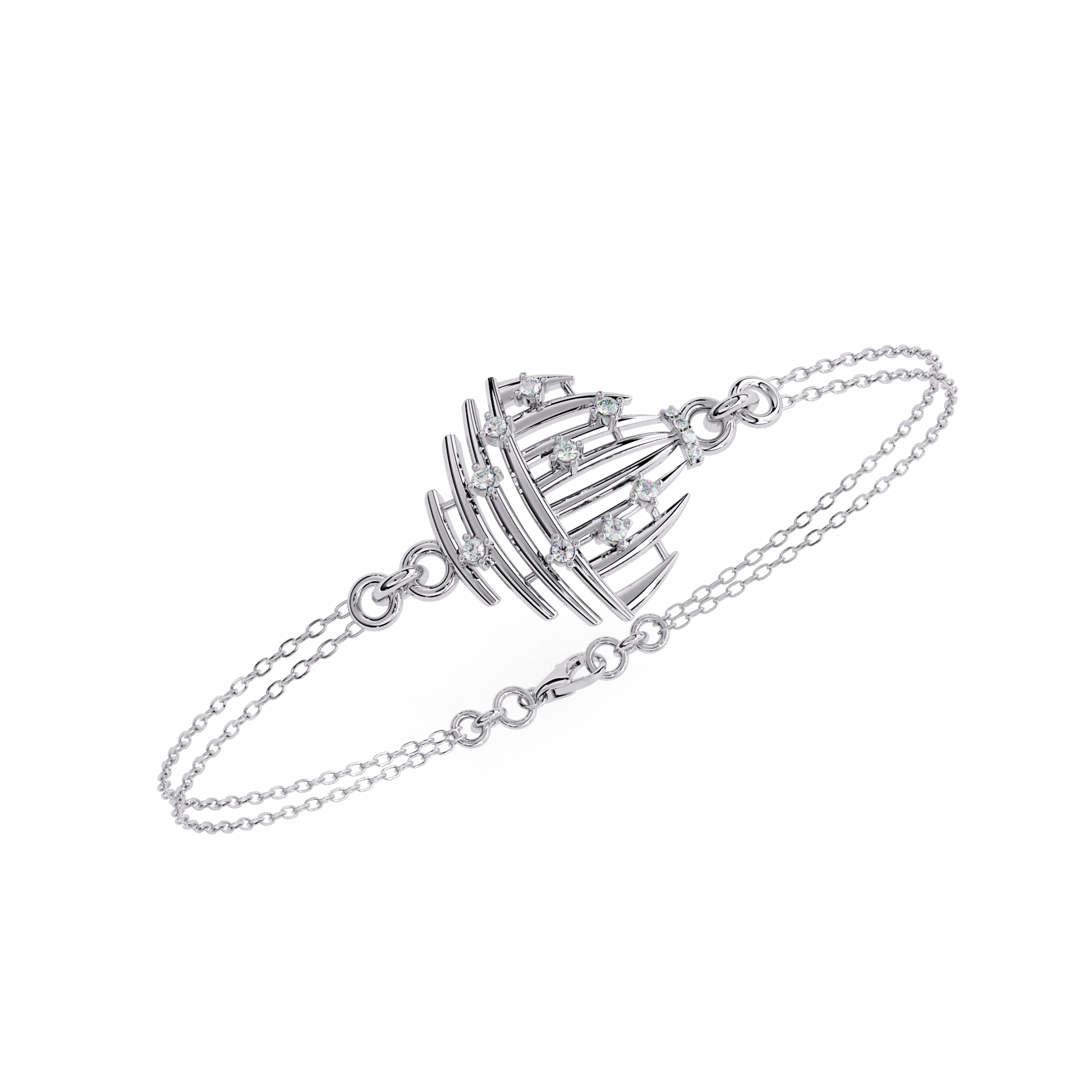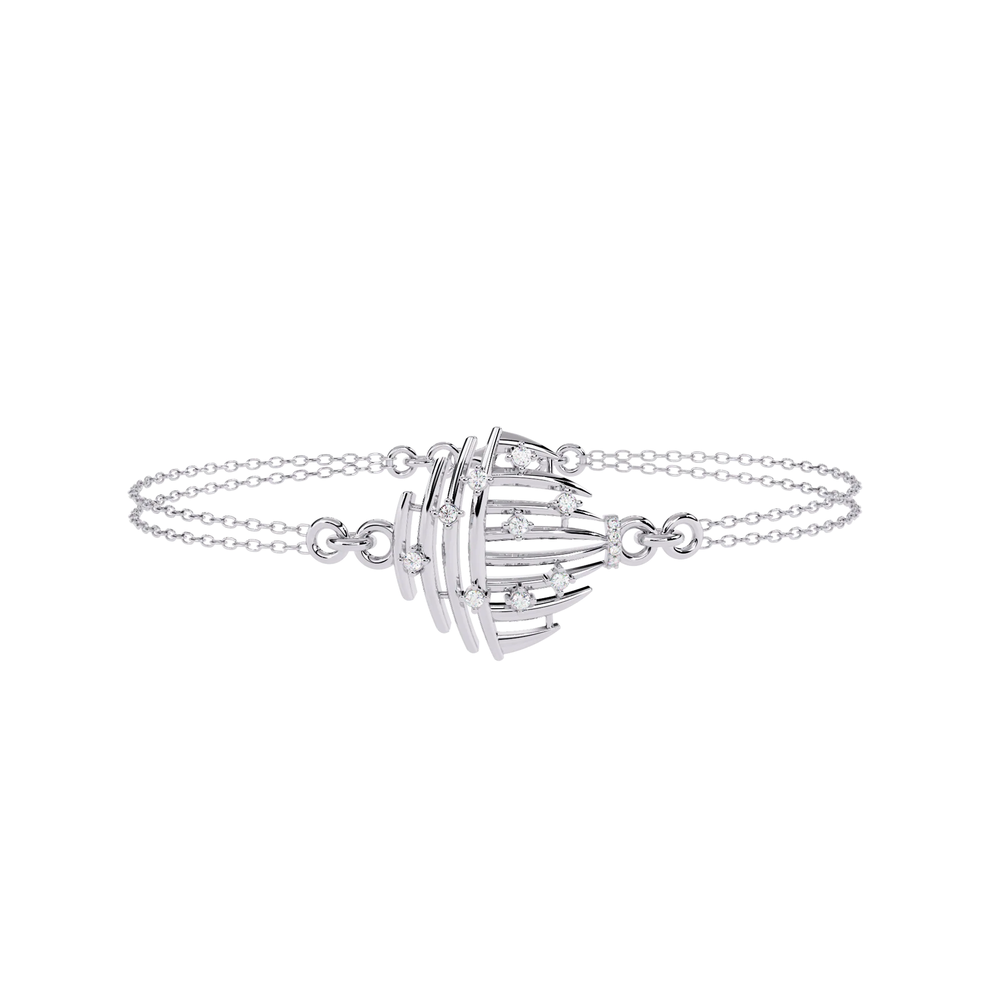 0.13 TCW Luxurious Moissanite Bracelet with Dual Chain and Artistic Diamond Studded Spiral Dome Centerpiece
