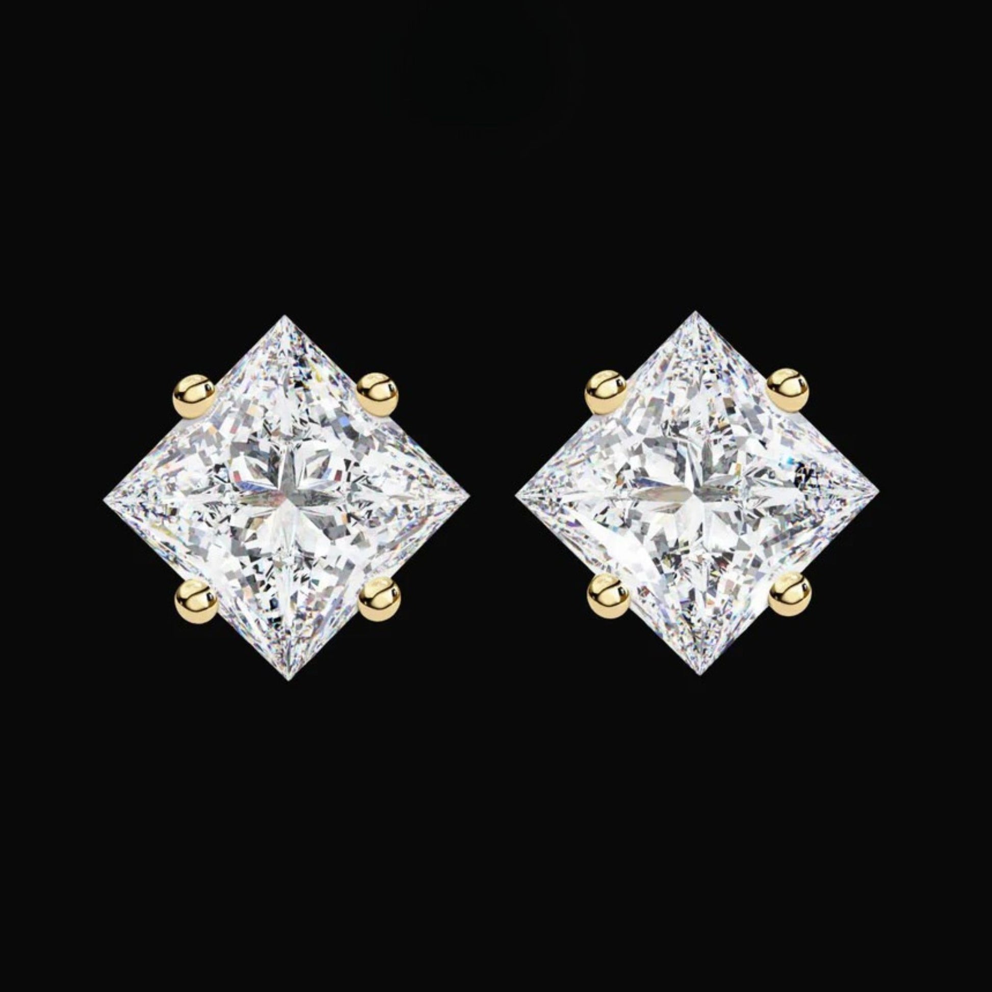 These elegant stud earrings feature stunning princess-cut stones set in a sleek four-prong gold setting, offering a perfect blend of modern sophistication and timeless brilliance. The sharp, geometric lines of the princess cut catch and reflect light beautifully, creating a striking sparkle that enhances any look. Crafted with precision and attention to detail, these earrings are an ideal choice for both everyday wear and special occasions, adding a refined touch of luxury to any jewelry collection.