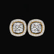 Indulge in sumptuous sparkle with The Luxe Pillow Studs. These captivating earrings feature two exquisite cushion-cut diamonds, beloved for their soft, romantic edges and intense, fiery brilliance. Each magnificent center stone is enveloped by a dazzling halo of perfectly matched accent diamonds, all expertly set in warm. This halo design not only amplifies the visual size of the center diamond but also creates a continuous field of shimmering light.
