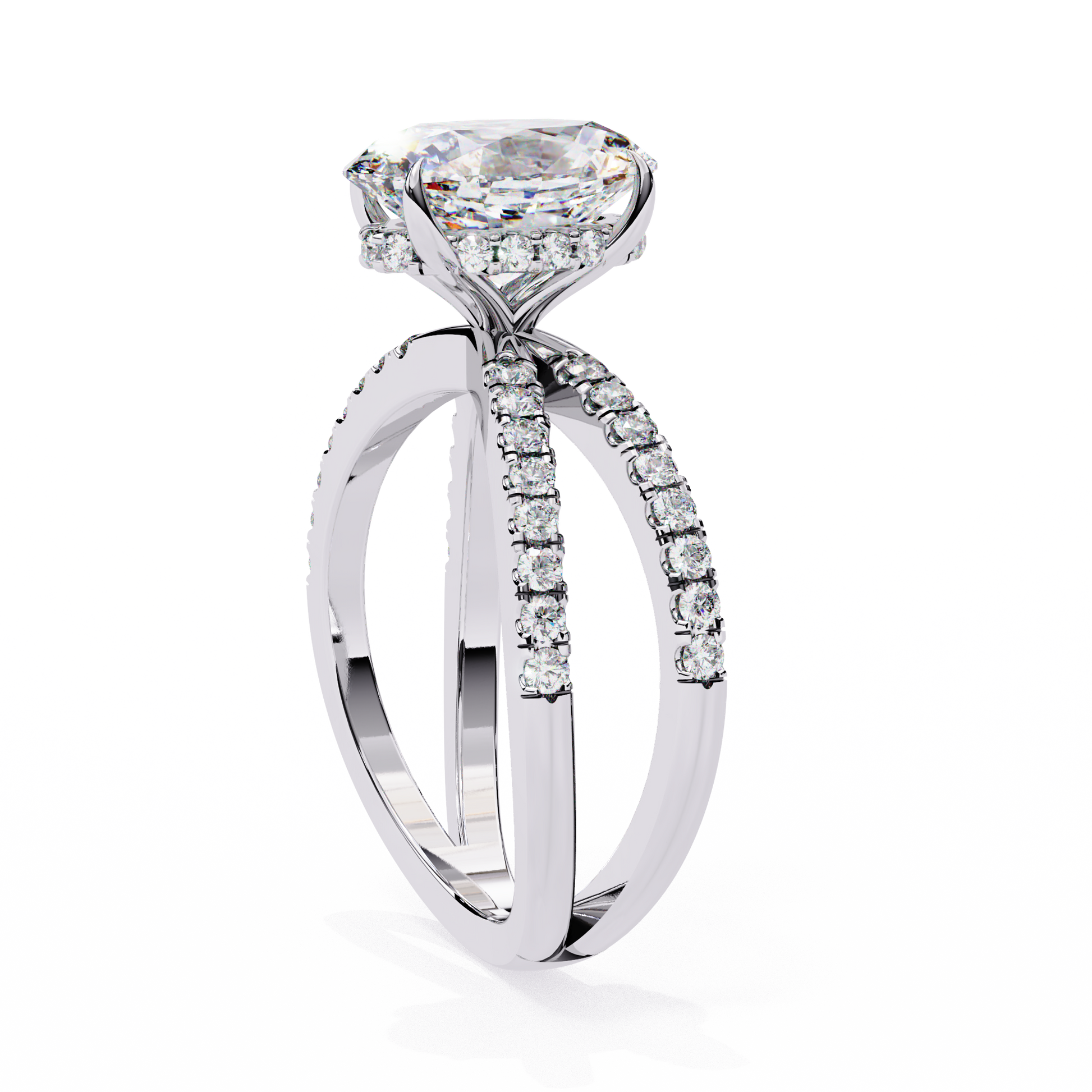 This exquisite ring showcases a breathtaking oval-cut diamond that radiates exceptional fire and clarity. The center stone is gracefully complemented by double pave bands, each adorned with meticulously set brilliant diamonds for added sparkle. Crafted in premium , this piece blends luxury, craftsmanship, and sophisticated design. Perfect as an engagement ring or a statement piece for those who appreciate elegance and fine jewelry.