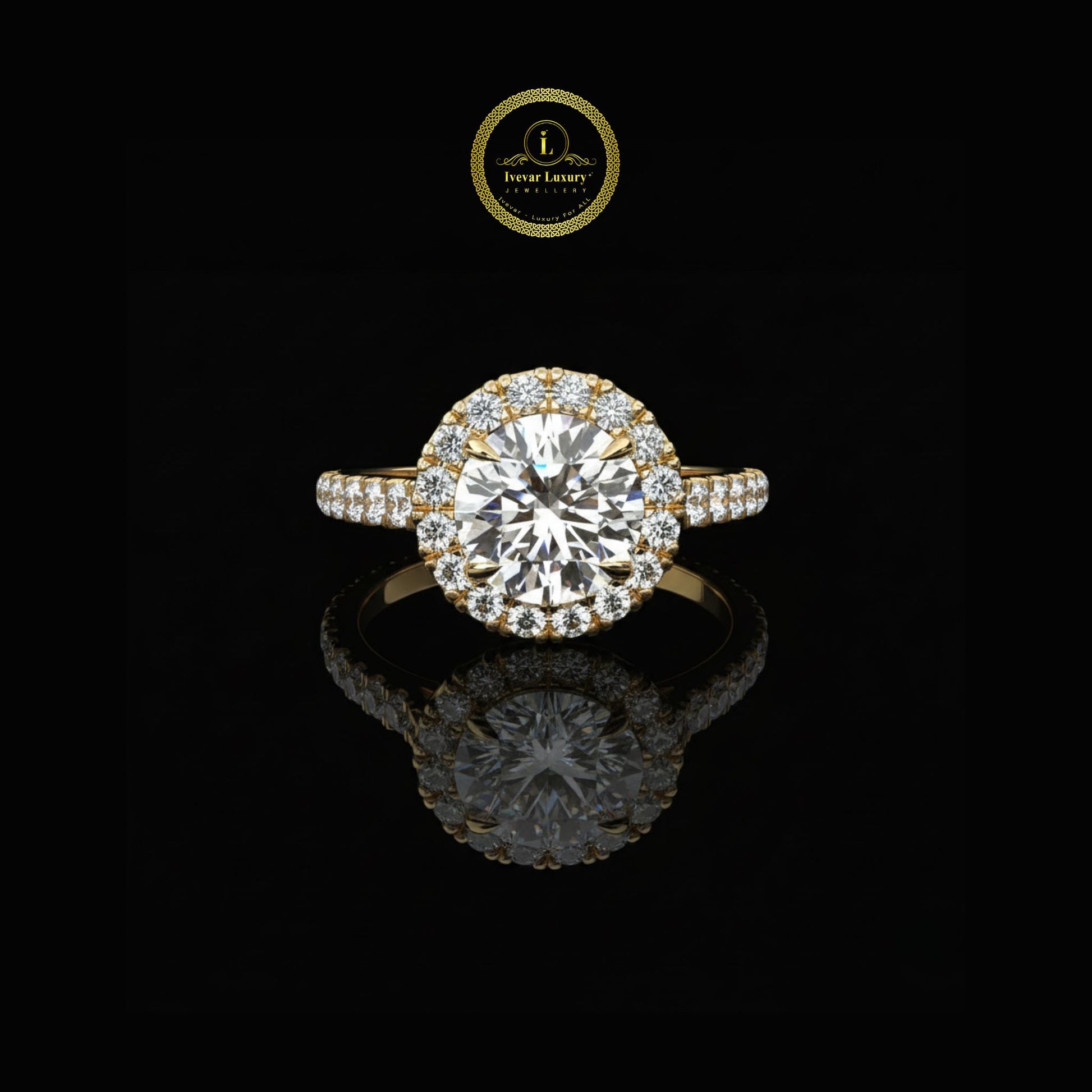 0.80 CT Trendy Round Cut Lab Grown Diamond Solitaire Halo Ring Thin Band in Solid Gold & Silver