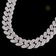 This striking piece is a custom Cuban link chain heavily set with brilliant moissanite diamonds, offering the luxurious look of natural diamonds at a more accessible value. The links feature a classic, bold, and heavily iced-out design, ensuring maximum sparkle and presence.