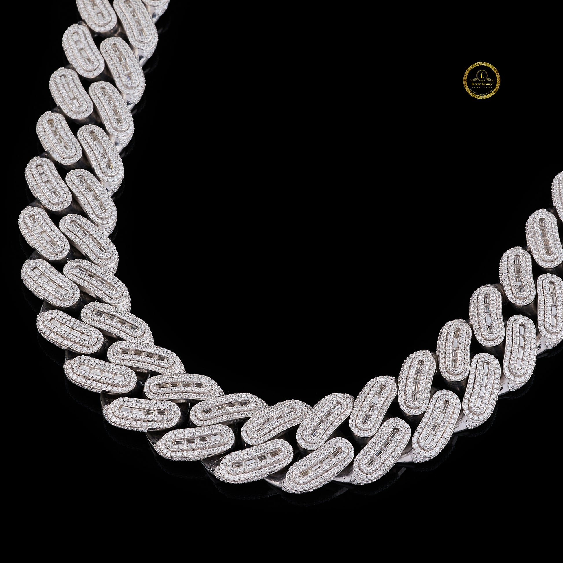 This image displays a heavy, custom Miami Cuban link chain featuring an impressive display of lab-grown diamonds. This style is known for its thick, interlocking links, offering a bold and substantial look.