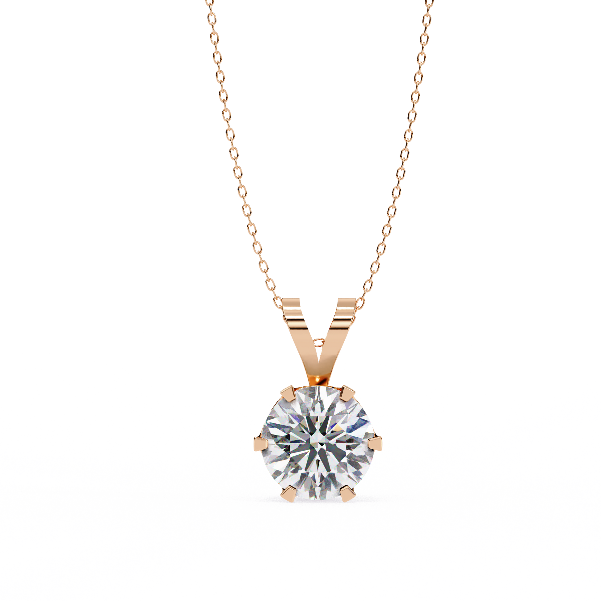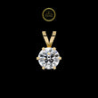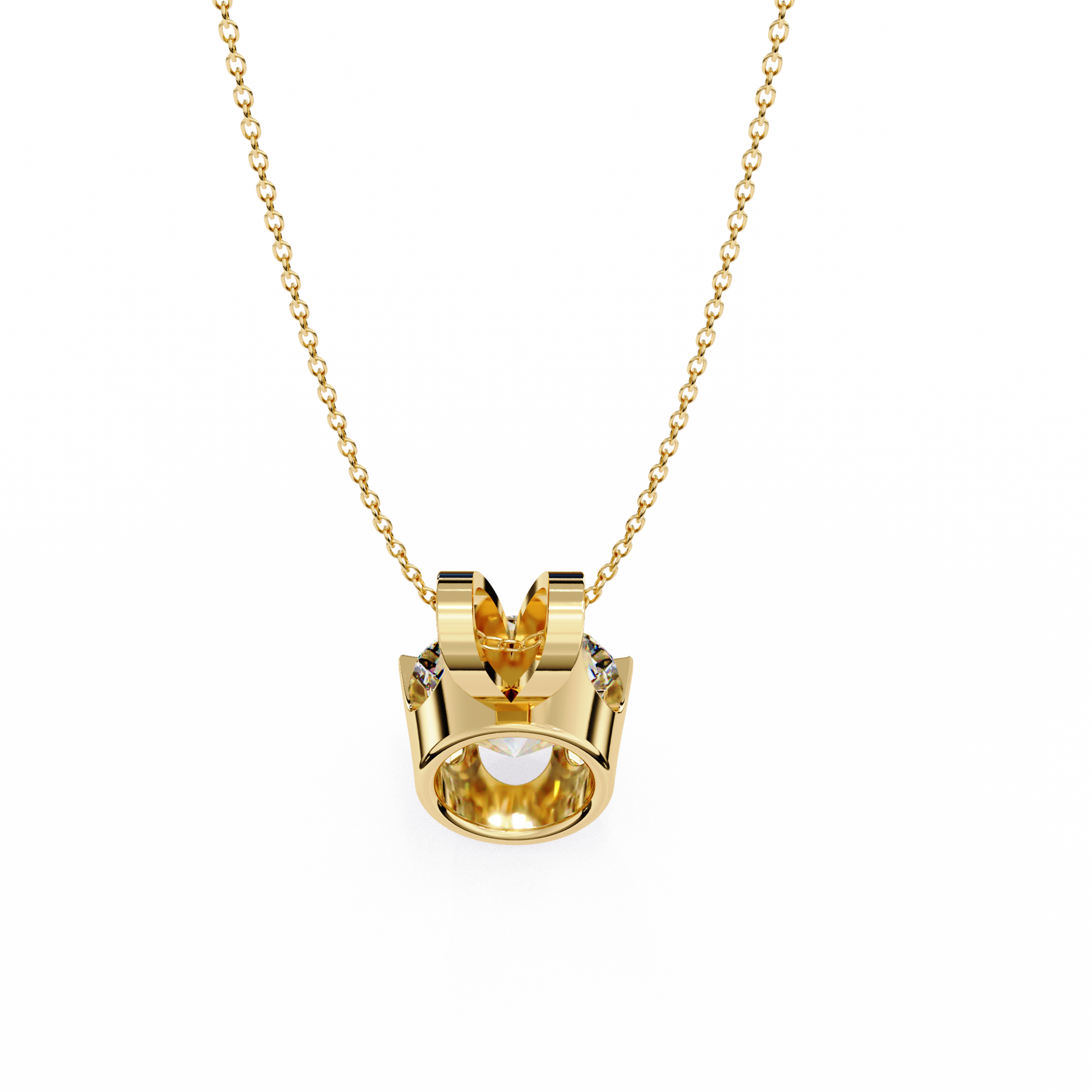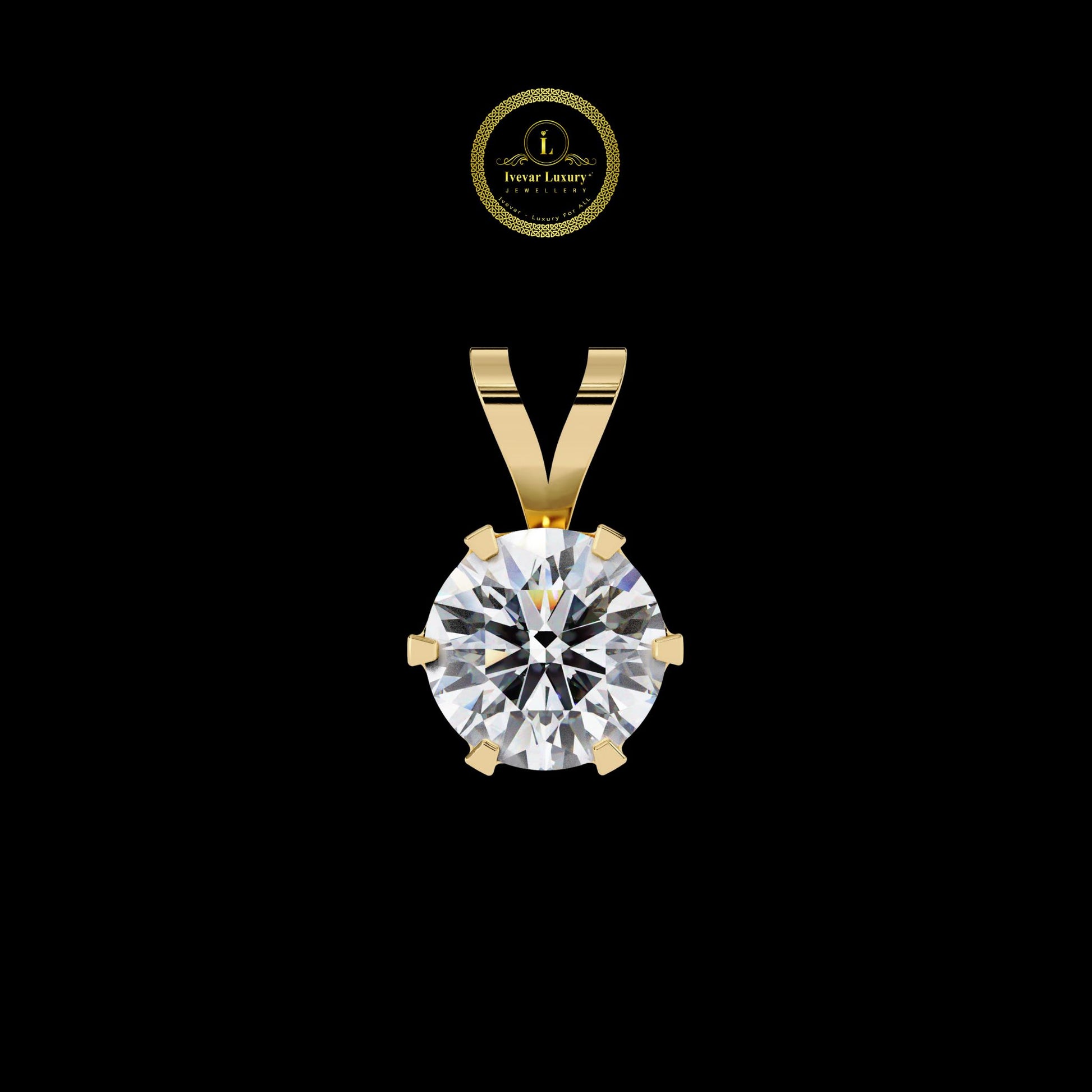 This exquisite pendant radiates timeless sophistication, showcasing a Dazzling Round Cut gemstone elegantly set in a six-prong gold mount. The highly polished gold accentuates the stone’s luminous sparkle, producing a mesmerizing dance of light with every motion. Its sleek V-shaped bail introduces a modern flair, harmoniously blending traditional elegance with contemporary design. Ivevar Luxury Crafts for those who value refined simplicity, this pendant embodies grace, purity, and everlasting allure.