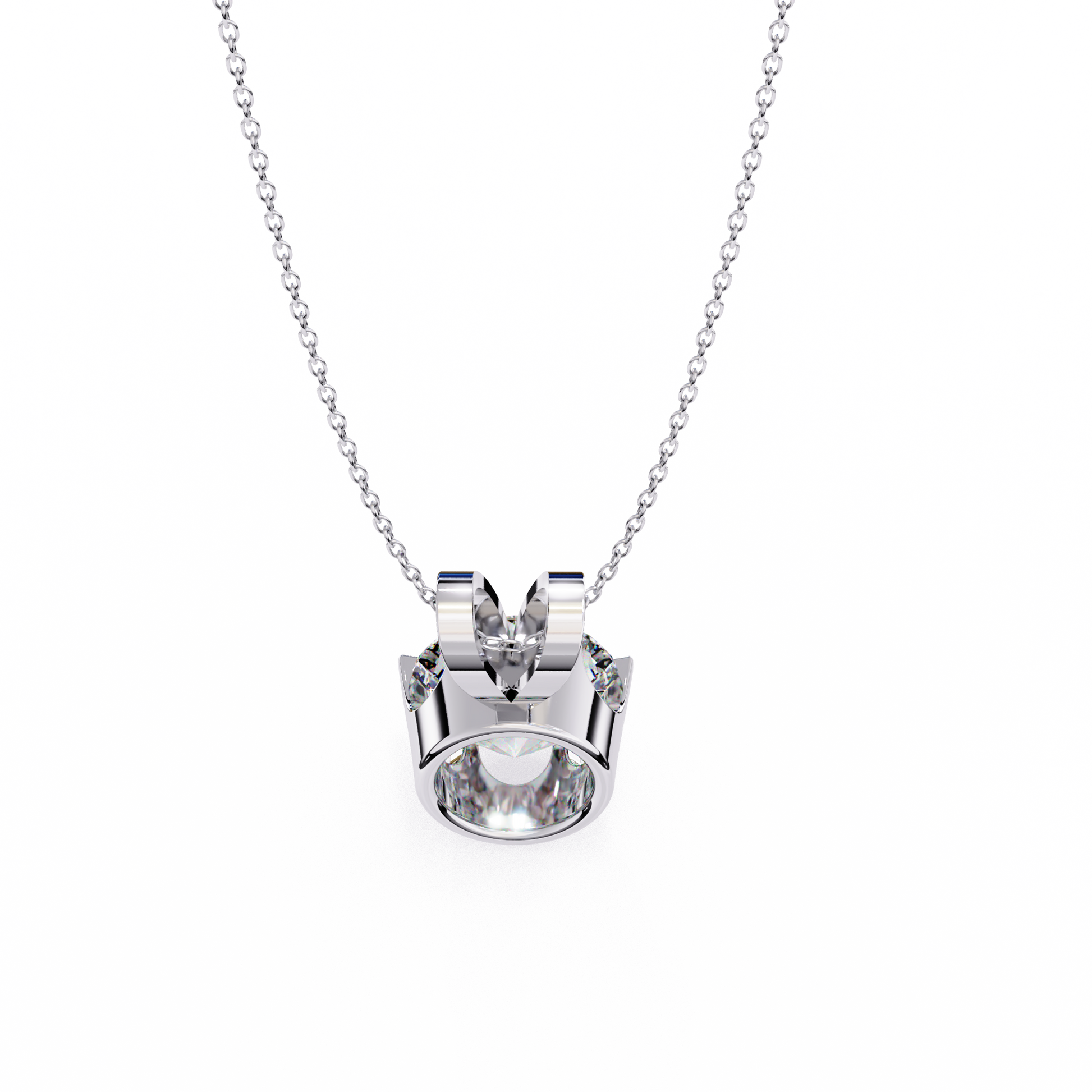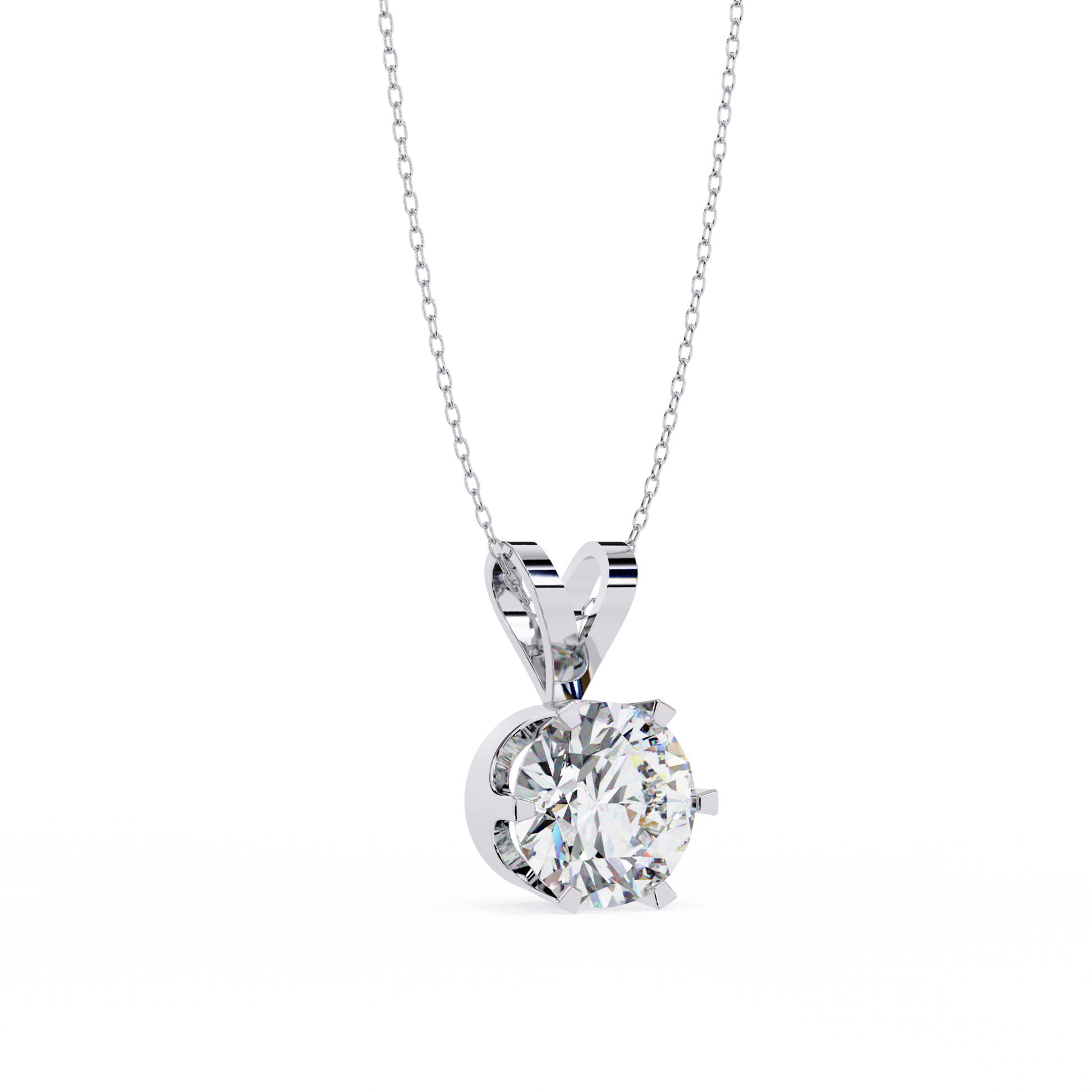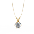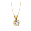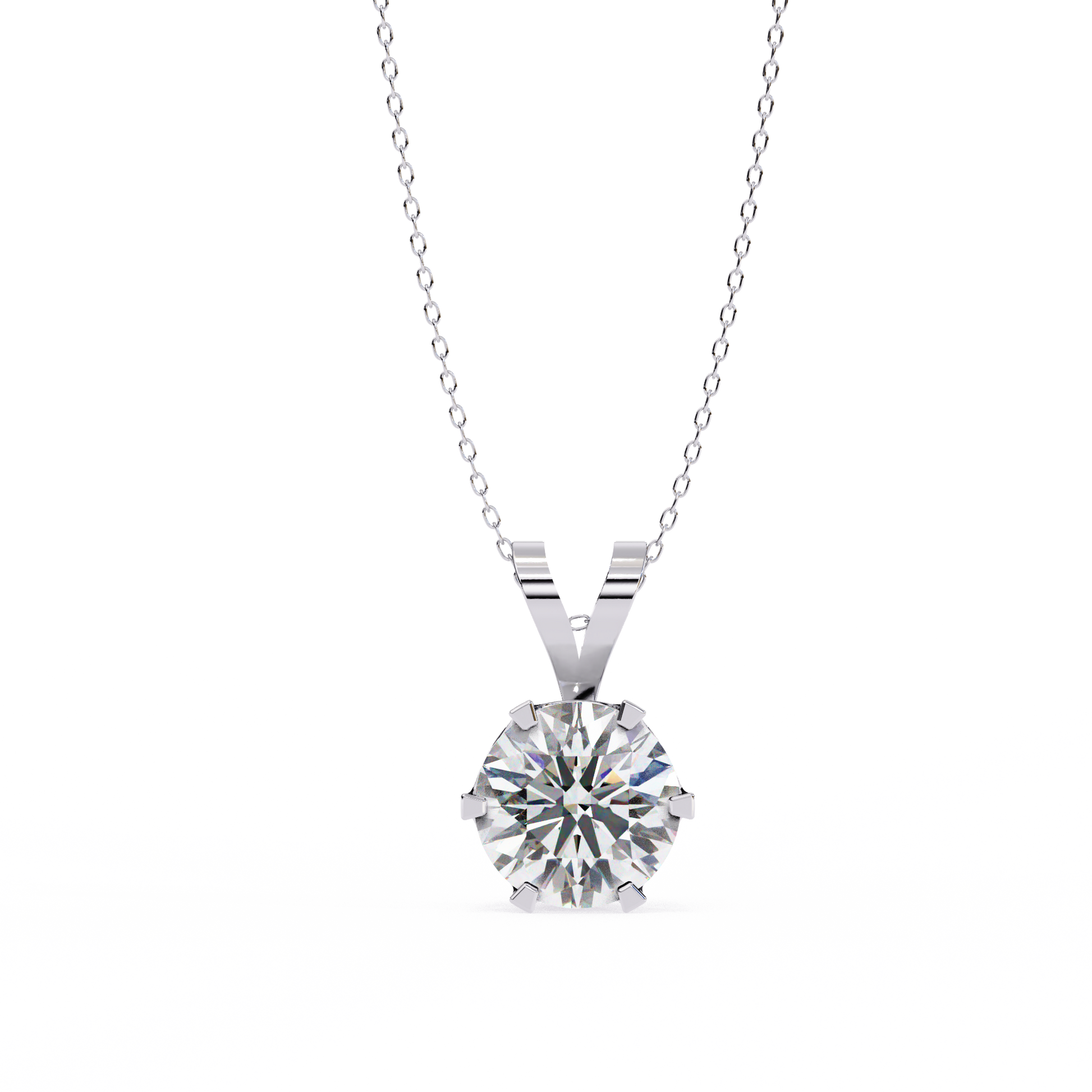 This exquisite pendant radiates timeless sophistication, showcasing a Dazzling Round Cut gemstone elegantly set in a six-prong gold mount. The highly polished gold accentuates the stone’s luminous sparkle, producing a mesmerizing dance of light with every motion. Its sleek V-shaped bail introduces a modern flair, harmoniously blending traditional elegance with contemporary design. Ivevar Luxury Crafts for those who value refined simplicity, this pendant embodies grace, purity, and everlasting allure.
