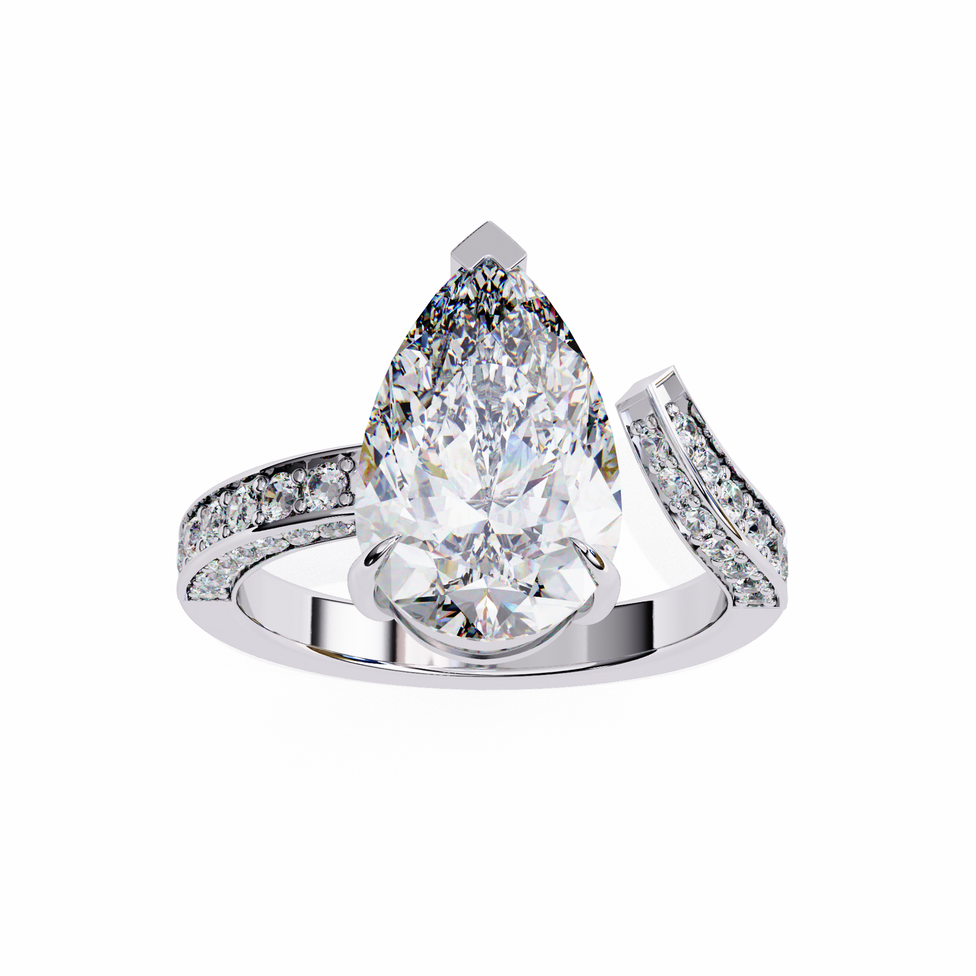 3.07 CT Elegant Teardrop Lab Grown Diamond Ring with Curved Wedding Band Modern Two-Tone Bridal Jewelry