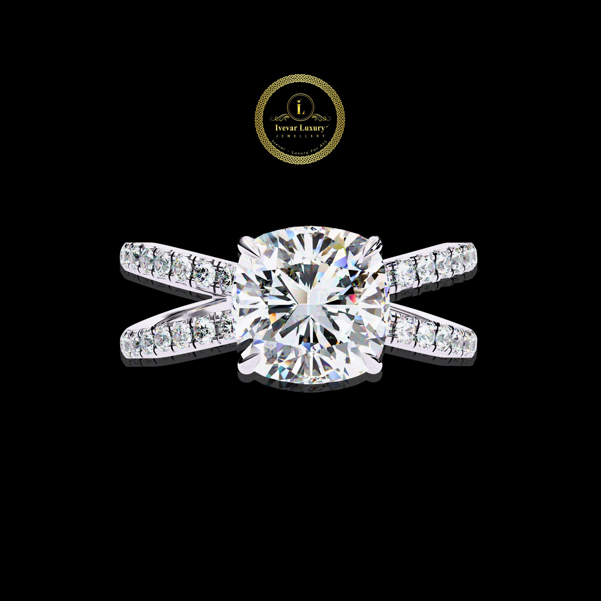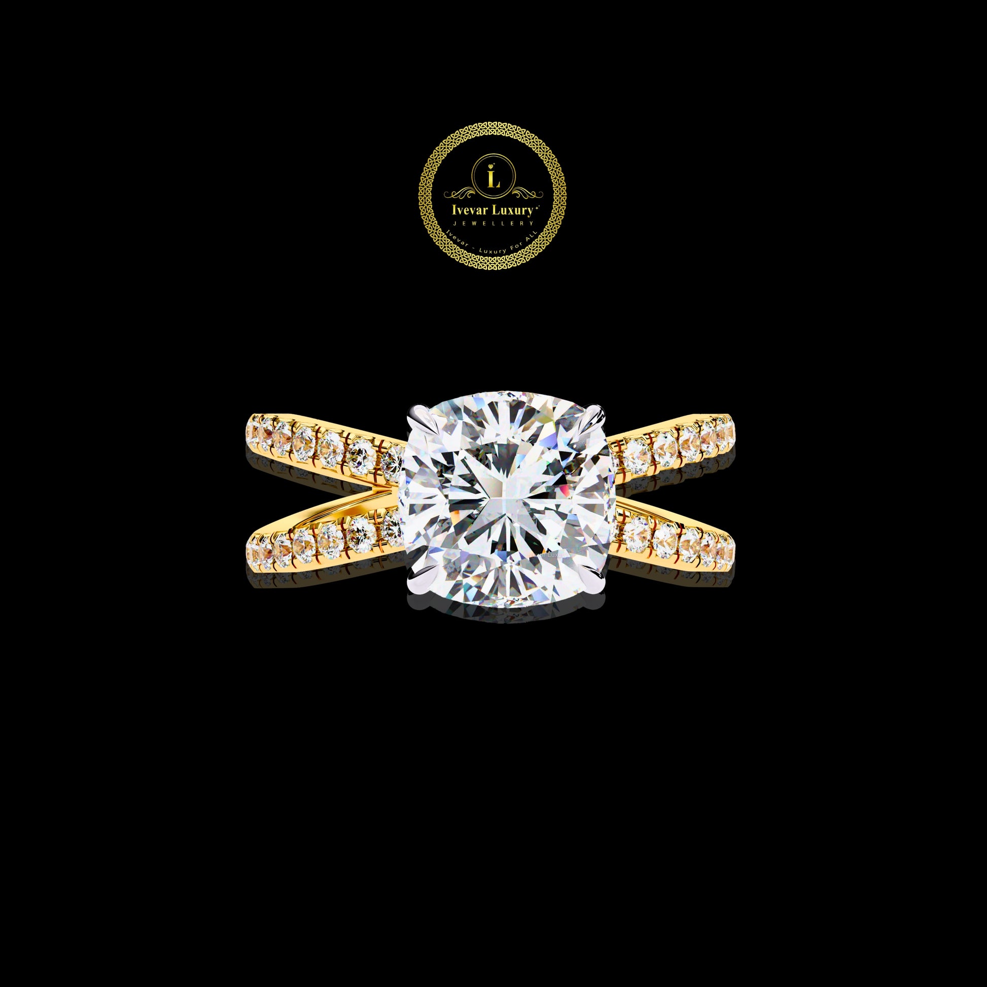 Vintage Gold Cushion Cut Moissanite Diamond Engagement Ring by Ivevar