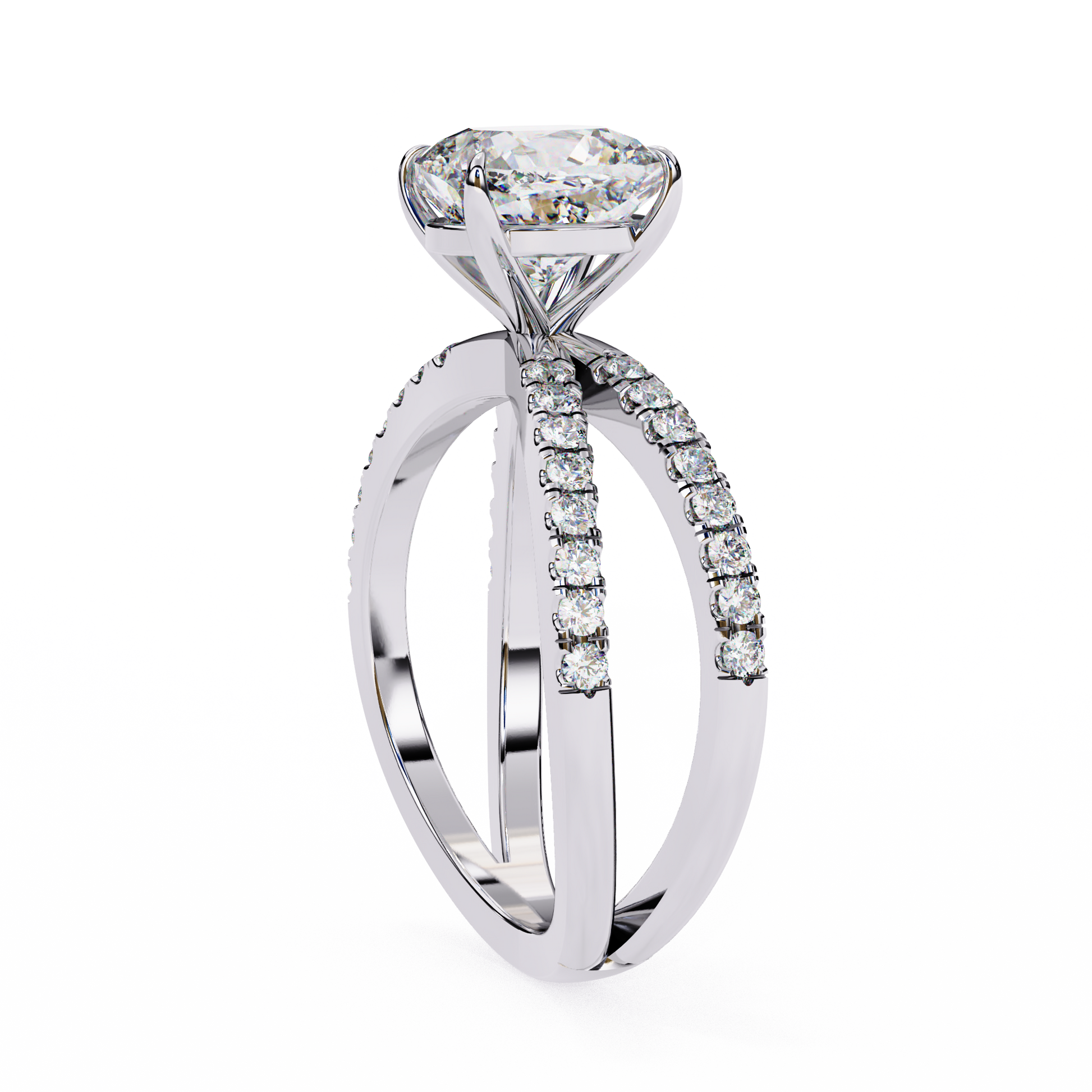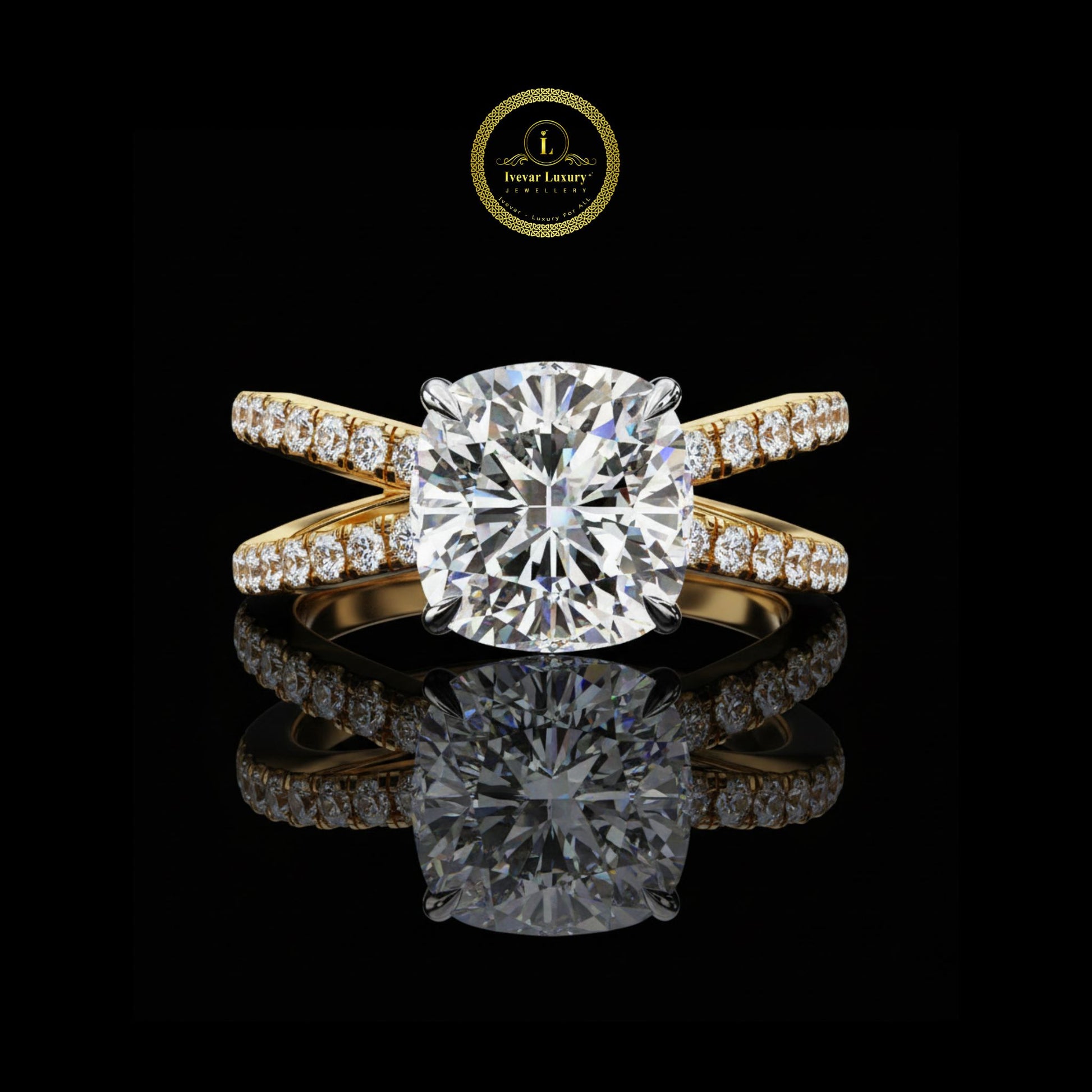 2.65 CT Luxury Cushion Cut Lab Grown Diamond Engagement Ring With Criss-Cross Band