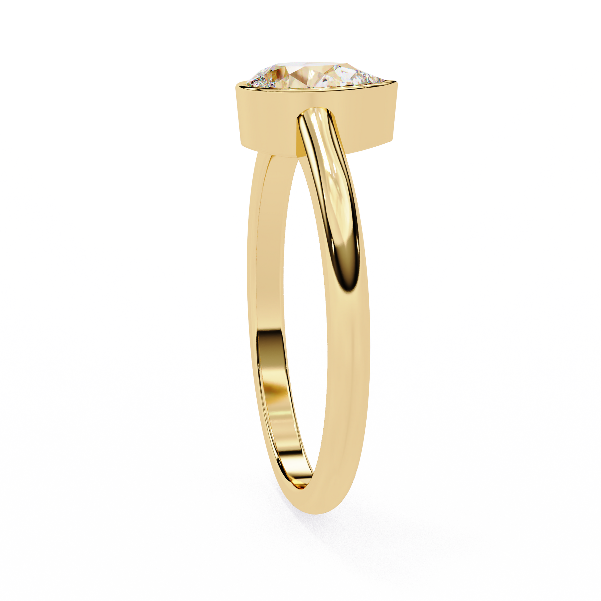 This stunning ring features a captivating pear-shaped diamond embraced by a minimalistic bezel setting that enhances the stone’s natural sparkle, clarity, and signature teardrop silhouette. Crafted in luxurious, the band provides a warm contrast that accentuates the diamond’s brilliance. Perfect for lovers of modern elegance, clean design, and exquisite fine jewelry, this piece is both graceful and enduring.